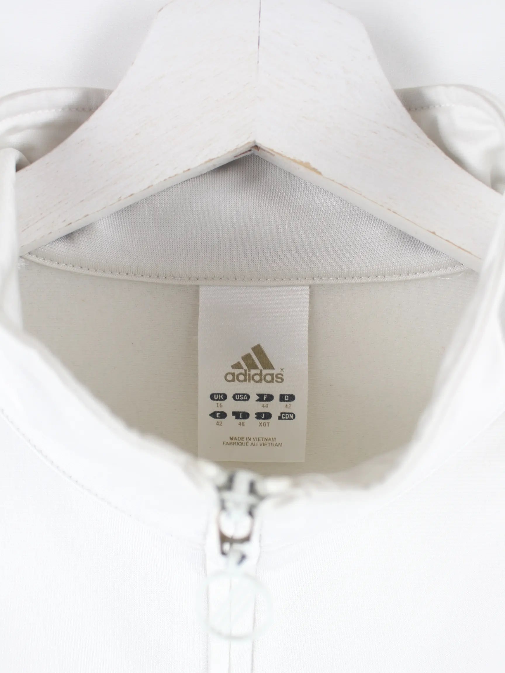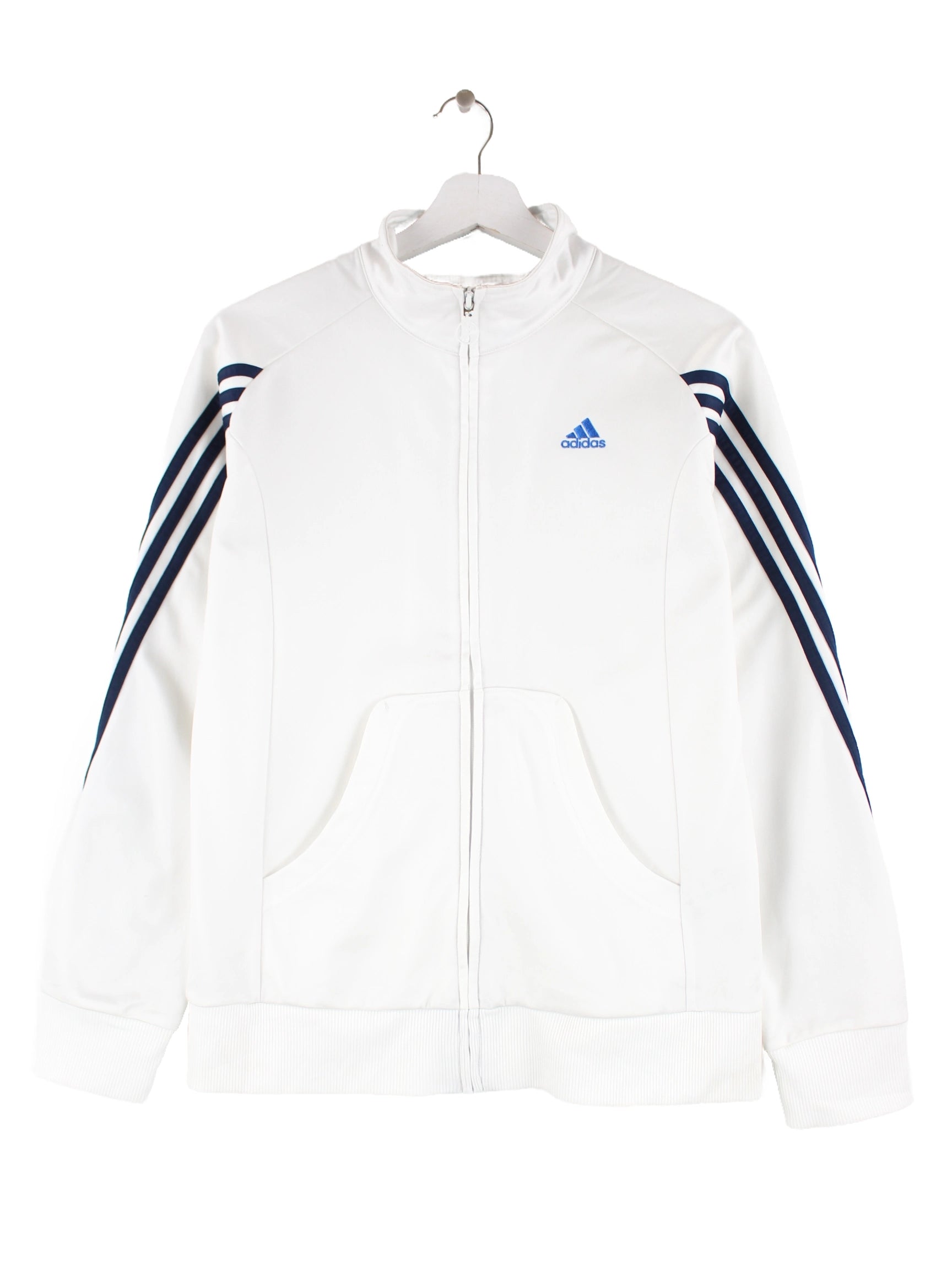 Weiße Trainingsjacke der Marke Adidas in Größe L. Sie ist aus Synthetik gefertigt und in gutem Zustand im Angebot.