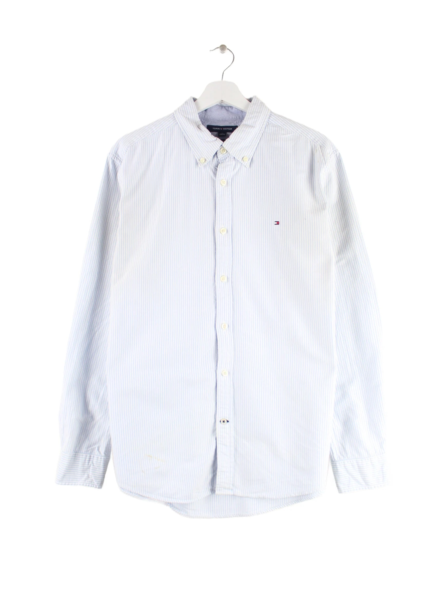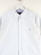 Blaues Hemd von Tommy Hilfiger in Größe L. Es ist aus Baumwolle produziert. Den Zustand würden wir als 'In Ordnung' bezeichnen (vergl. Bilder).
