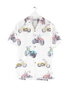 Vintage 90s Biker Print Kurzarm Hemd Weiß M
