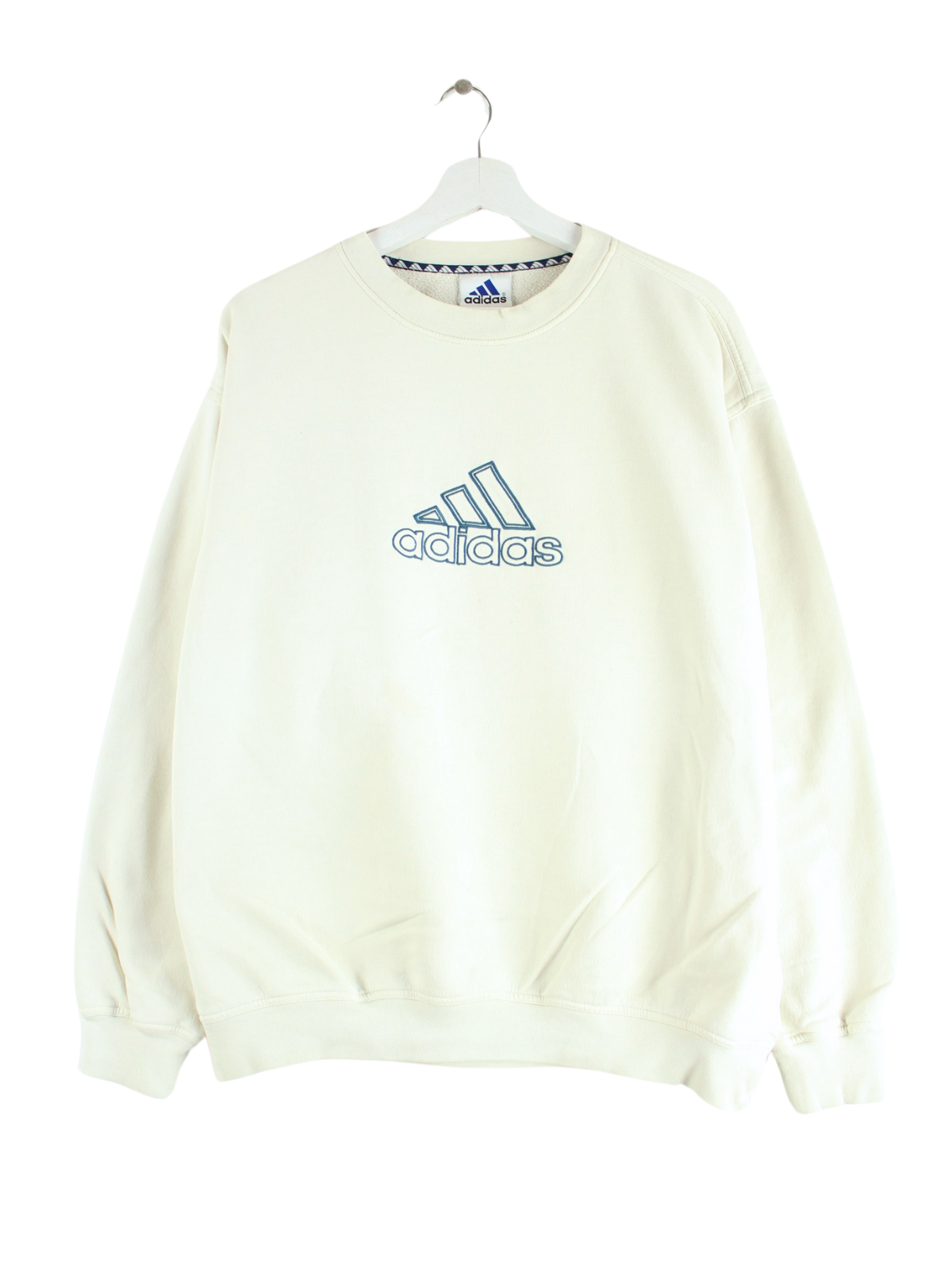 Adidas 90s Vintage Big Logo Embroidered Sweater Beige L