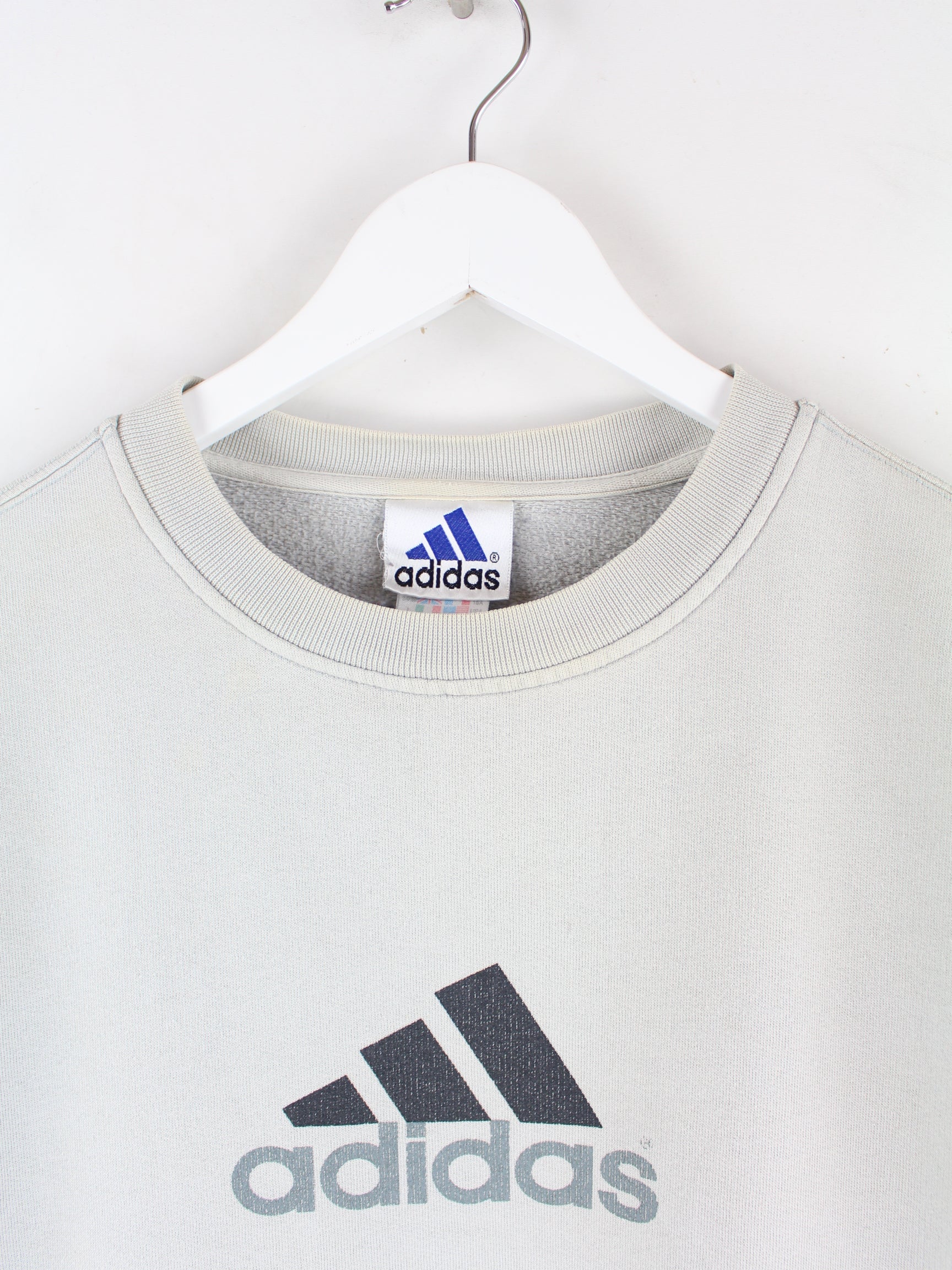 Sweater der Brand Adidas in Größe XL aus den 90'ern. Er ist aus einer Baumwollmischung gefertigt und in Grün bei uns zu bekommen. Mit tollem Vintage Print.