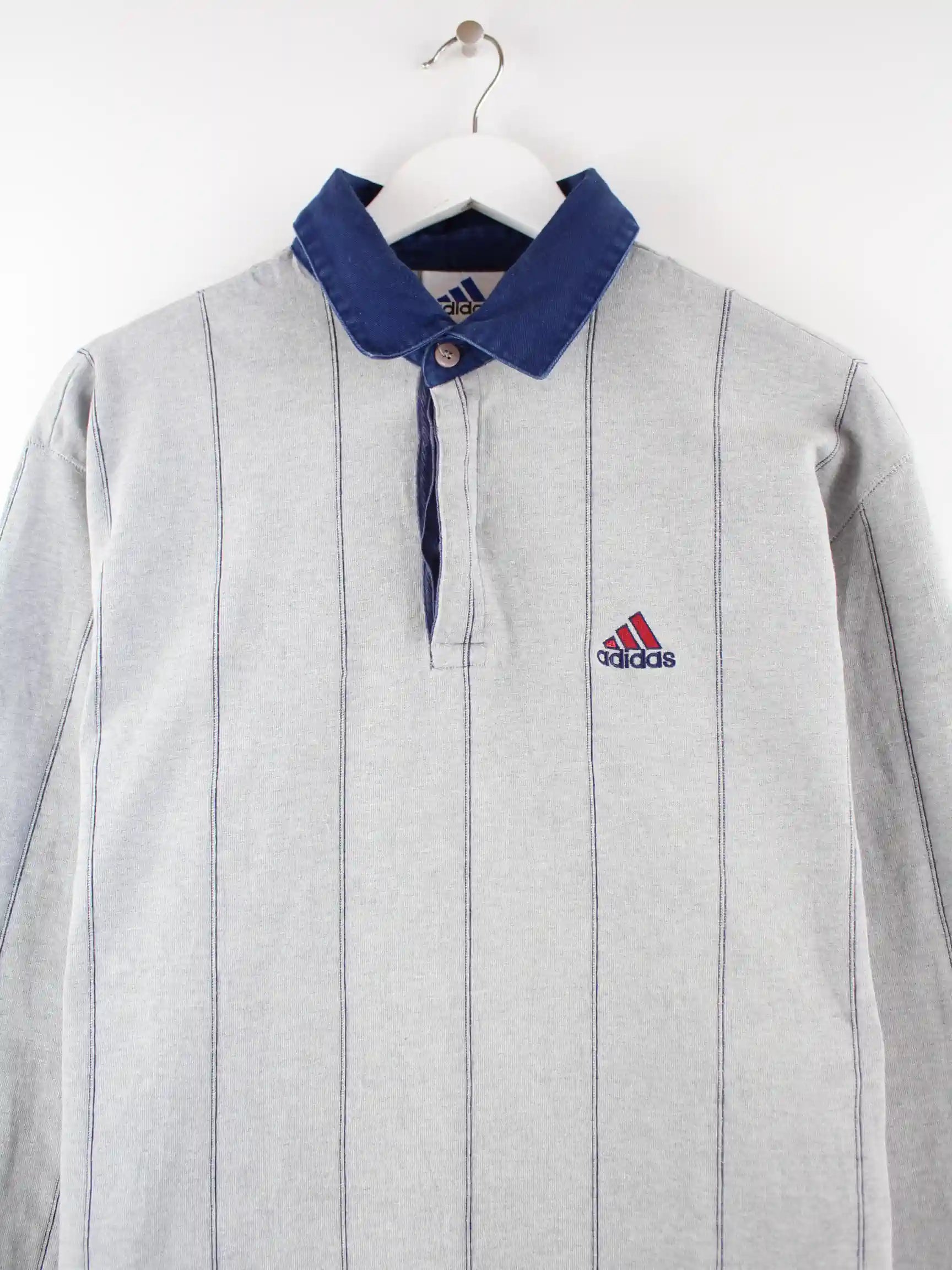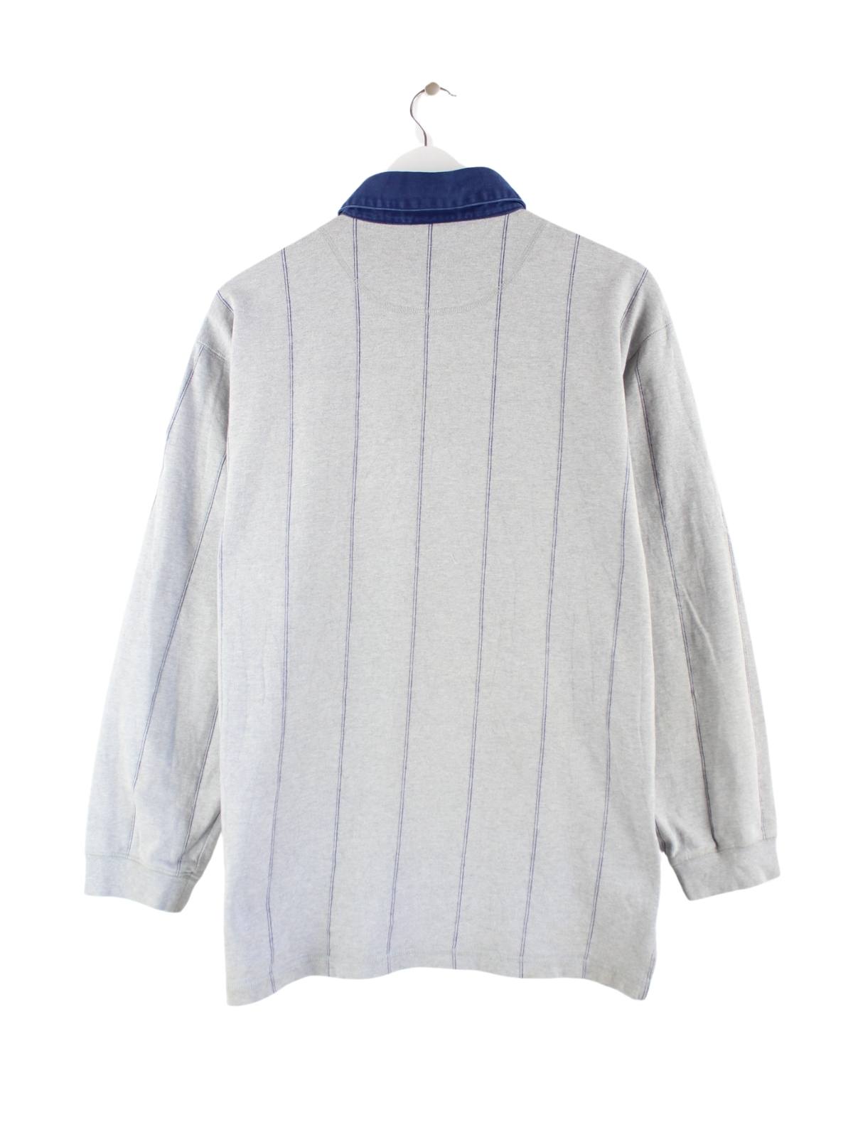 Adidas 90s Vintage Striped Langarm Rugby Polo Grau M