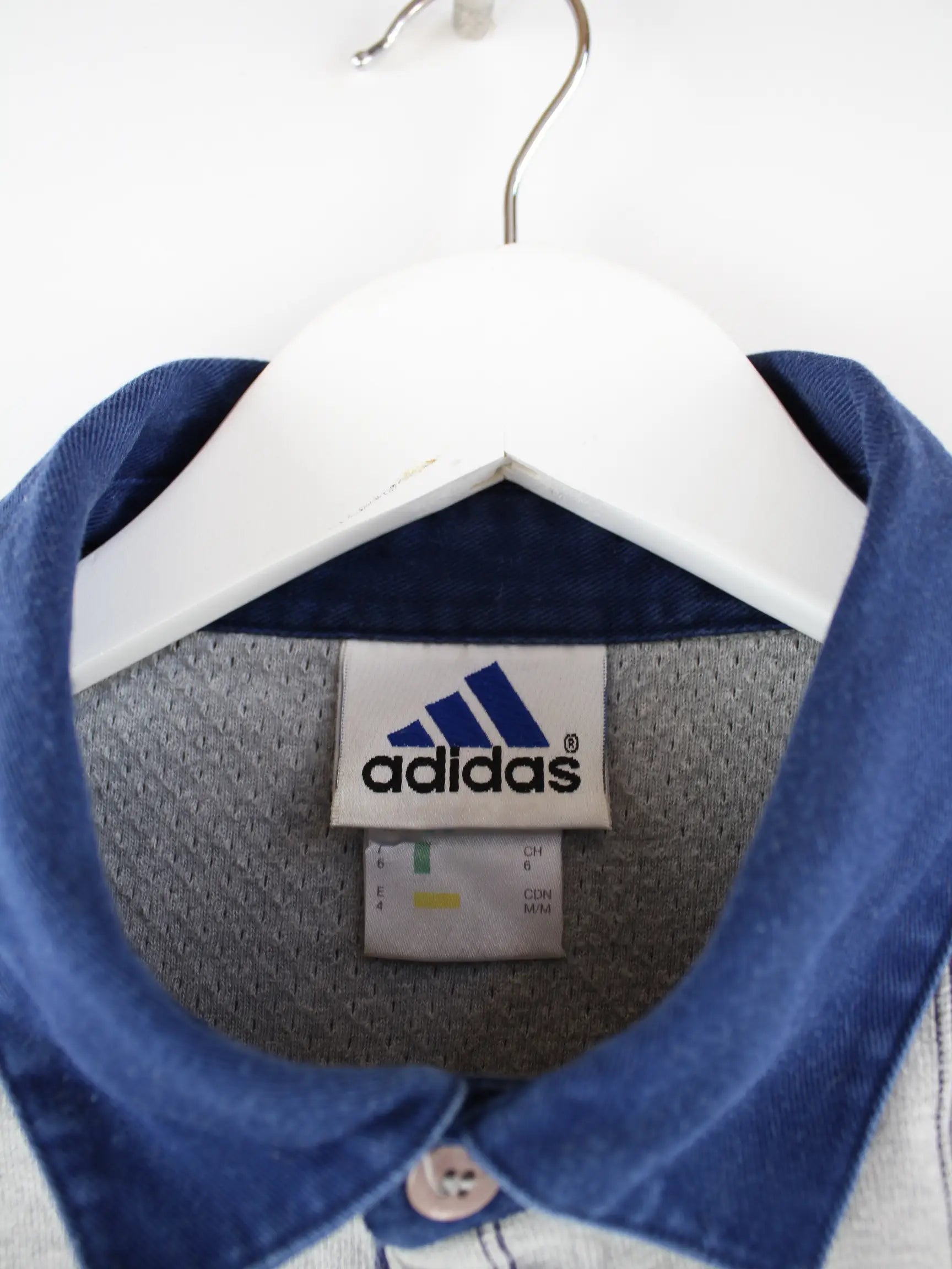 Poloshirt der Brand Adidas in Größe M aus den 90'ern. Es ist aus Baumwolle gefertigt und in Grau im Angebot.