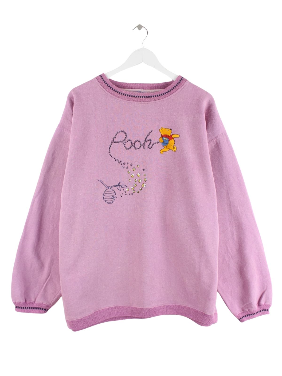 Disney 90s Vintage Pooh Embroidered Sweater Lila XXL