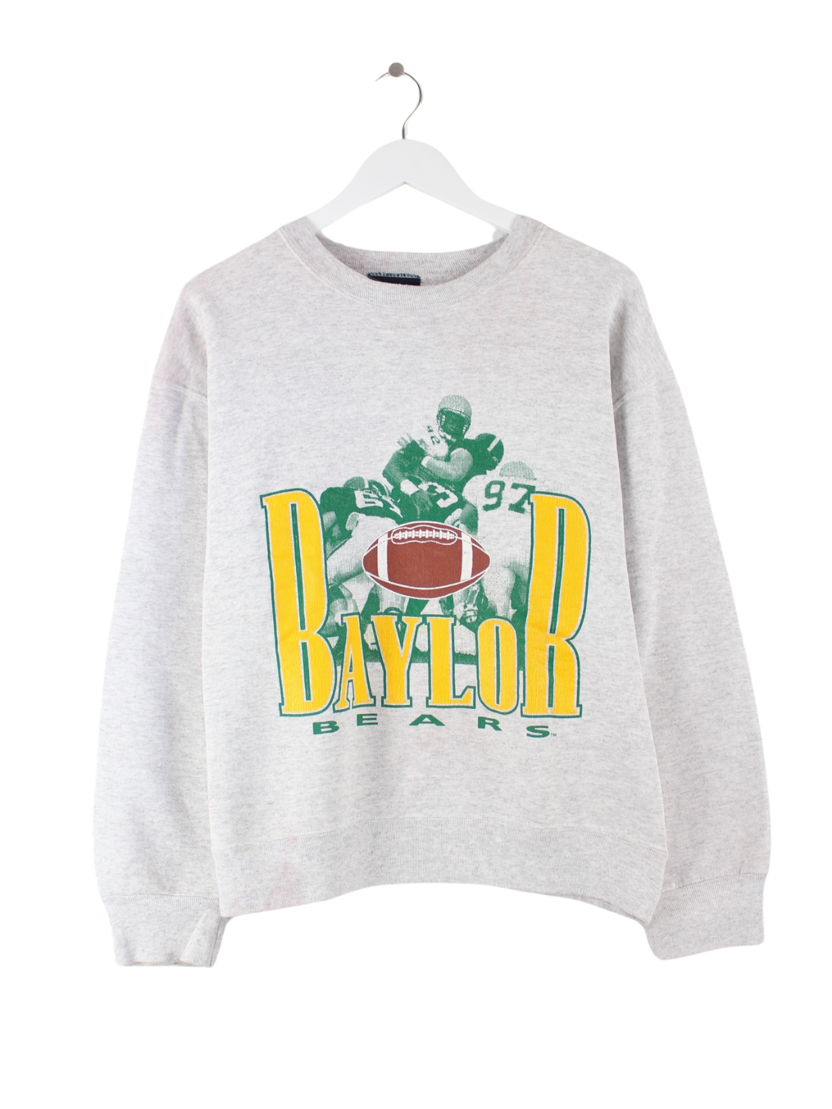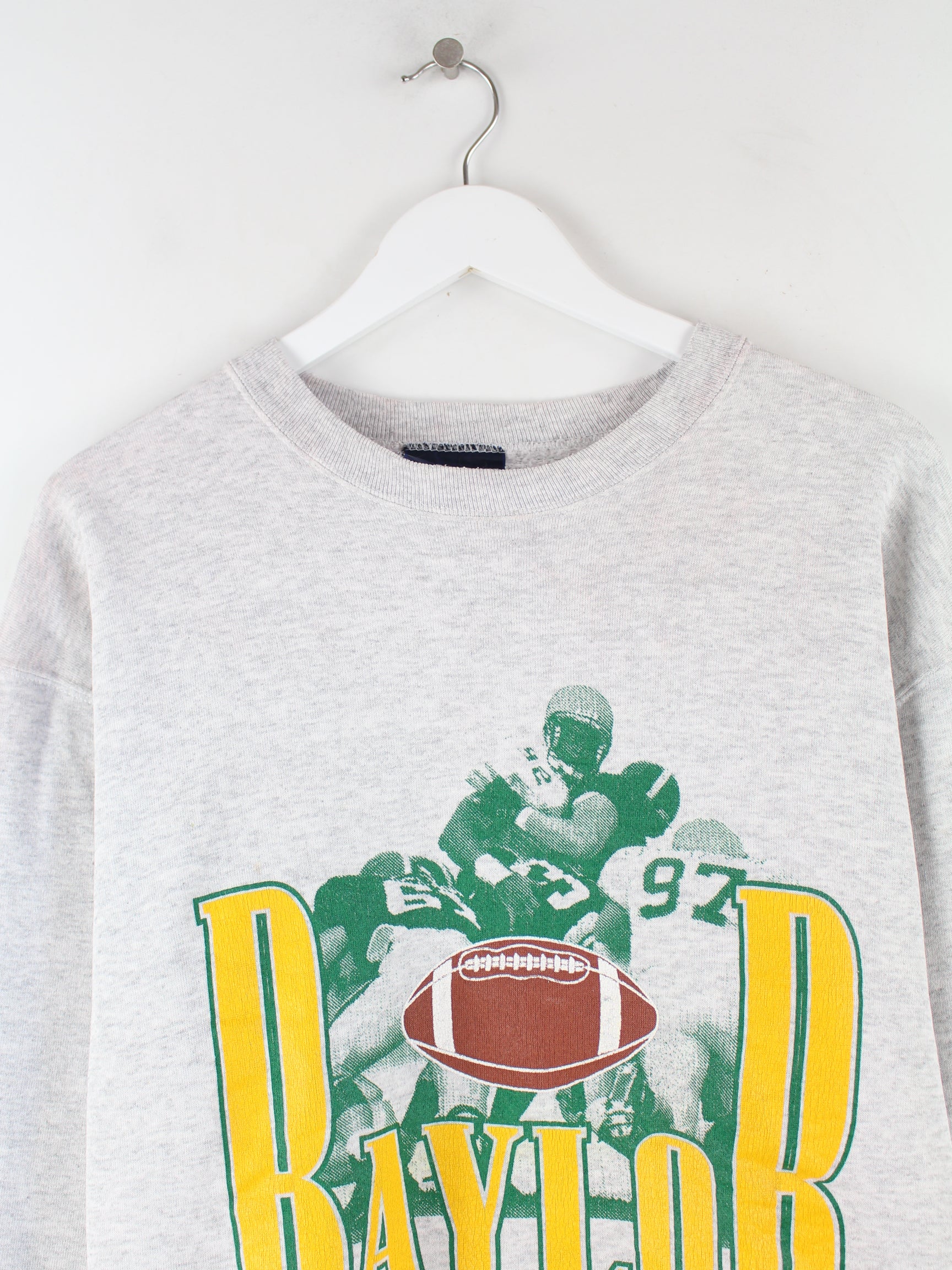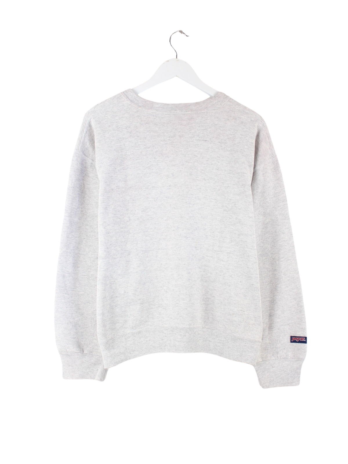 Grauer Sweater vom Label Jansport in Größe L. Er ist aus einer Baumwollmischung angefertigt und in gutem Zustand vorrätig. Mit schönem Baylob Print.