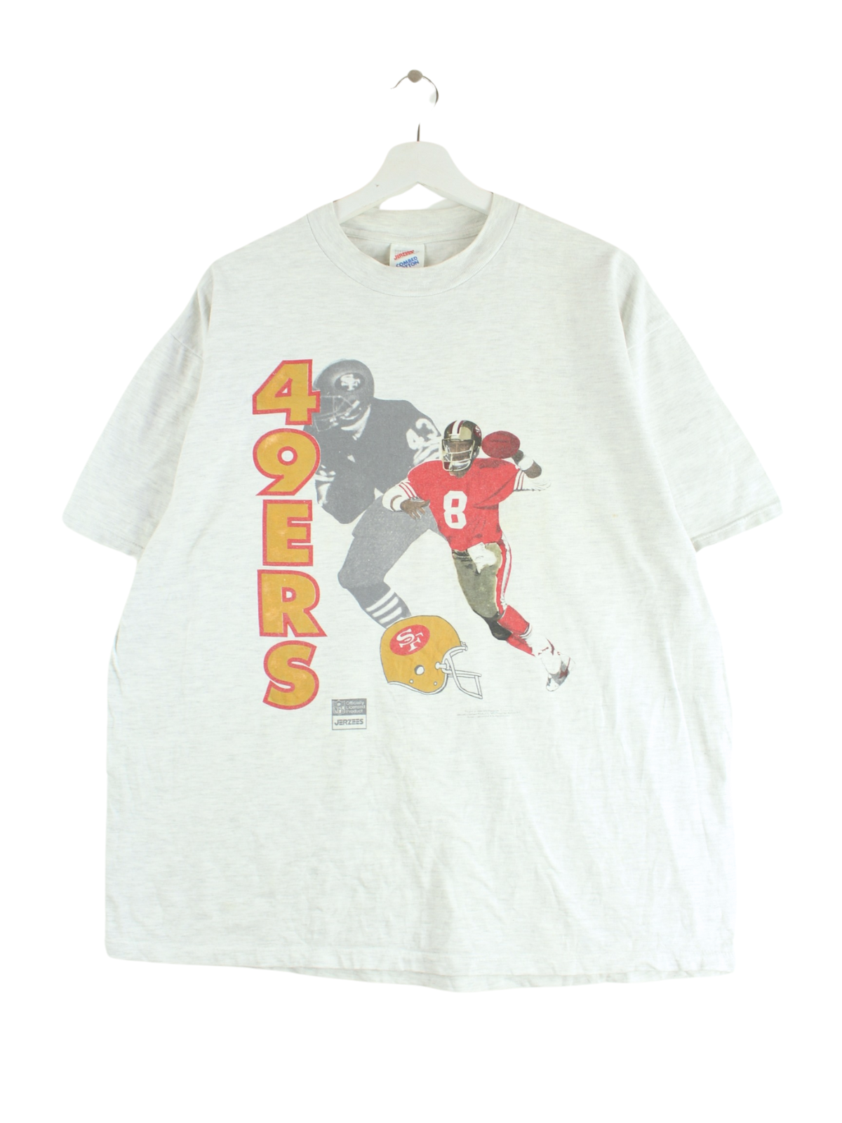 T-Shirt vom Brand Jerzees in Größe XL aus den 90'ern. Es ist aus Baumwolle gefertigt und in Grau im Angebot. Mit schönem 49ers Print.