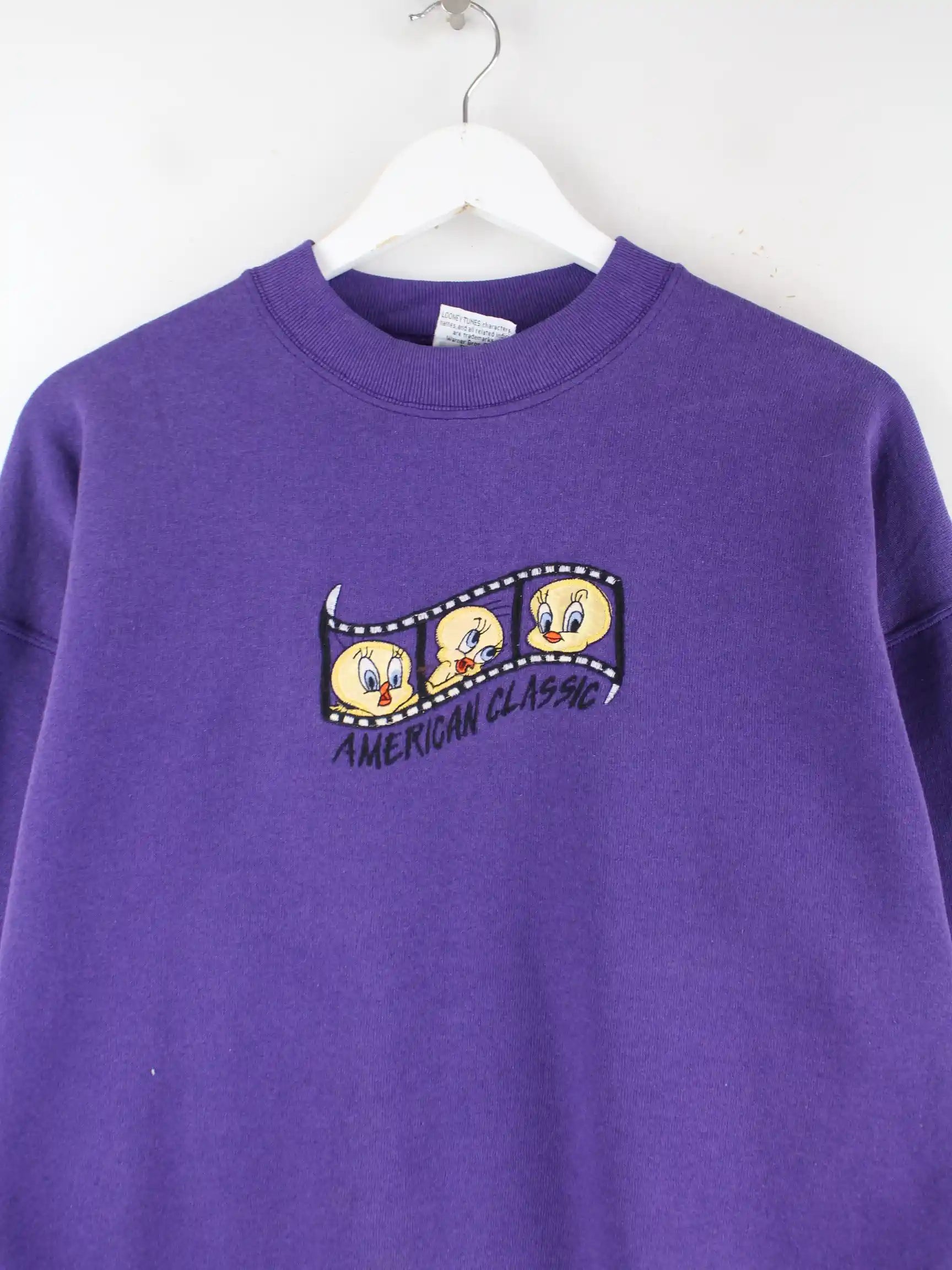 Looney Tunes 90s Vintage Tweety Embroidered Sweater Lila XL