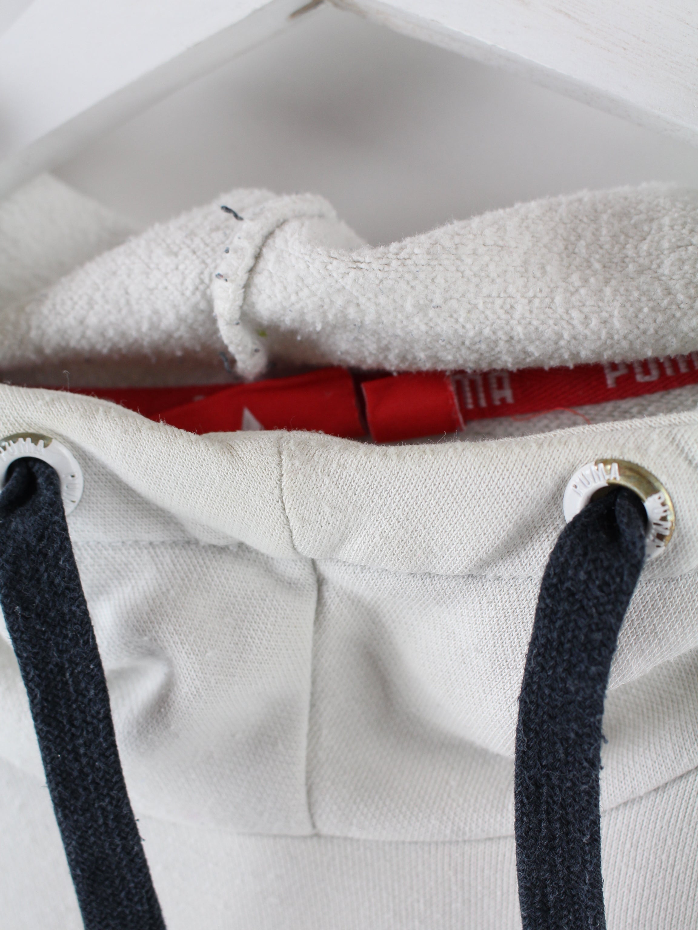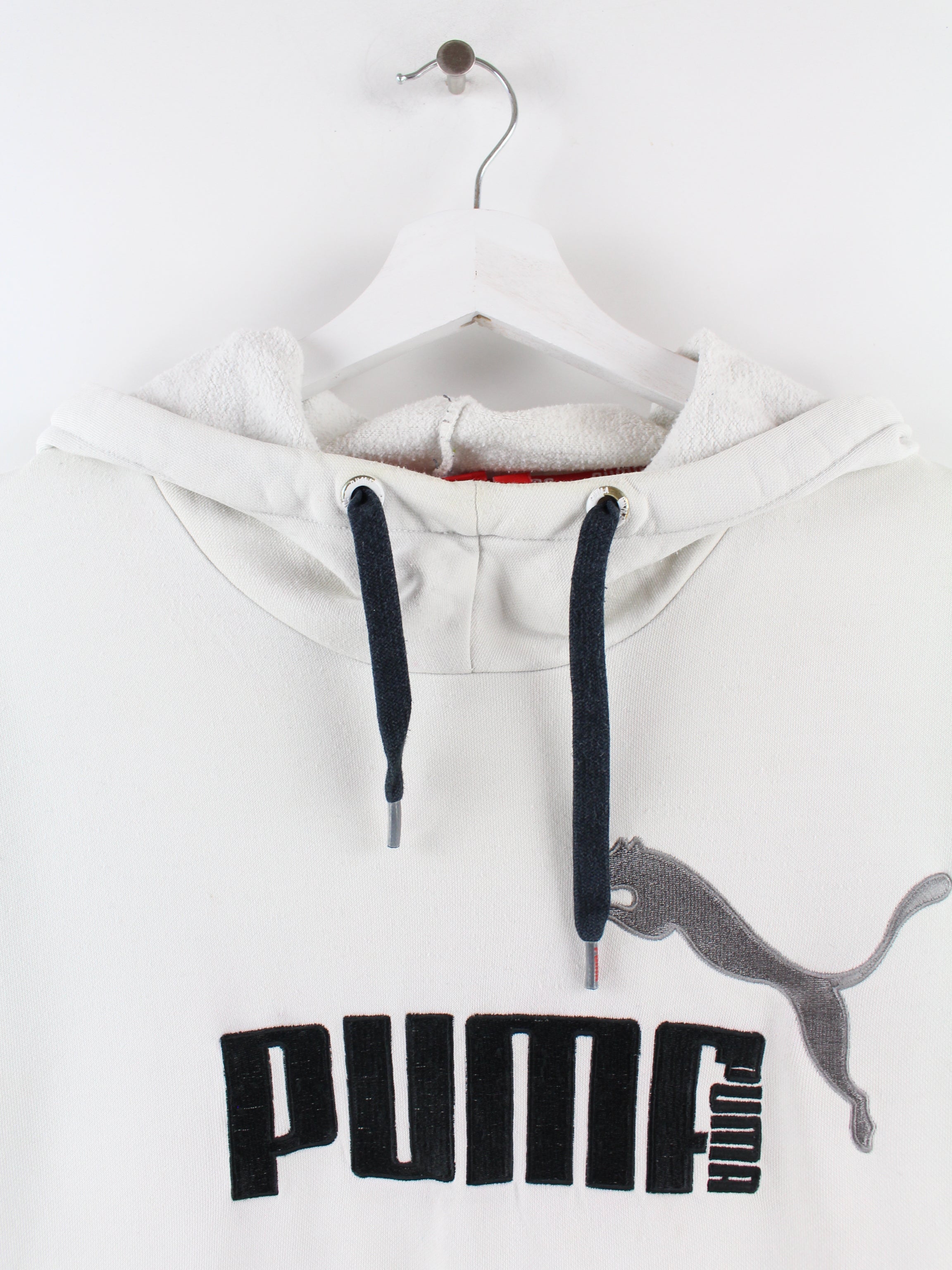 Sweat à capuche blanc Puma, avec un grand logo sur le devant.