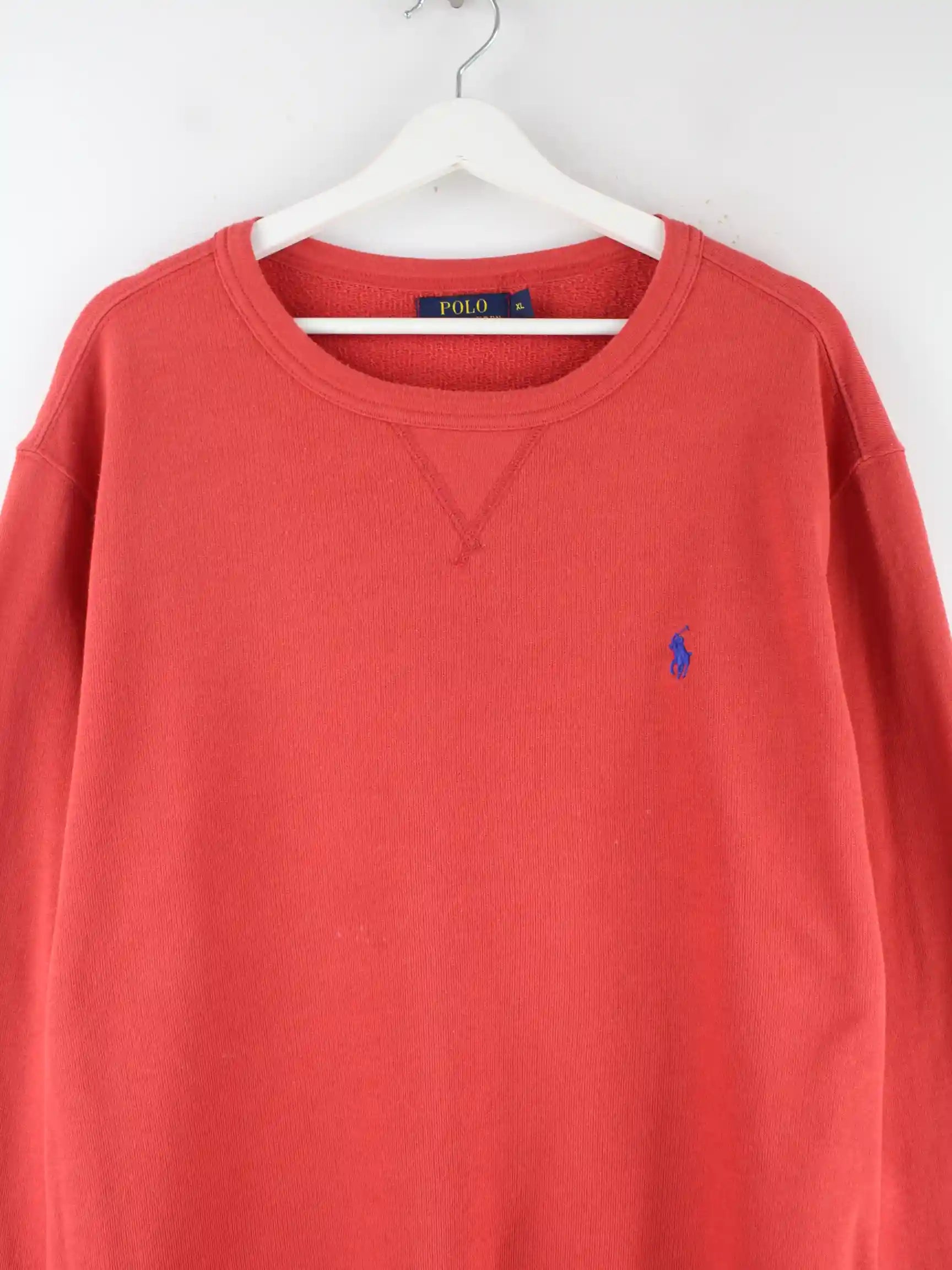Roter Sweater von Ralph Lauren in Größe XL. Er ist aus einer Baumwollmischung angefertigt und in gutem Zustand im Bestand.