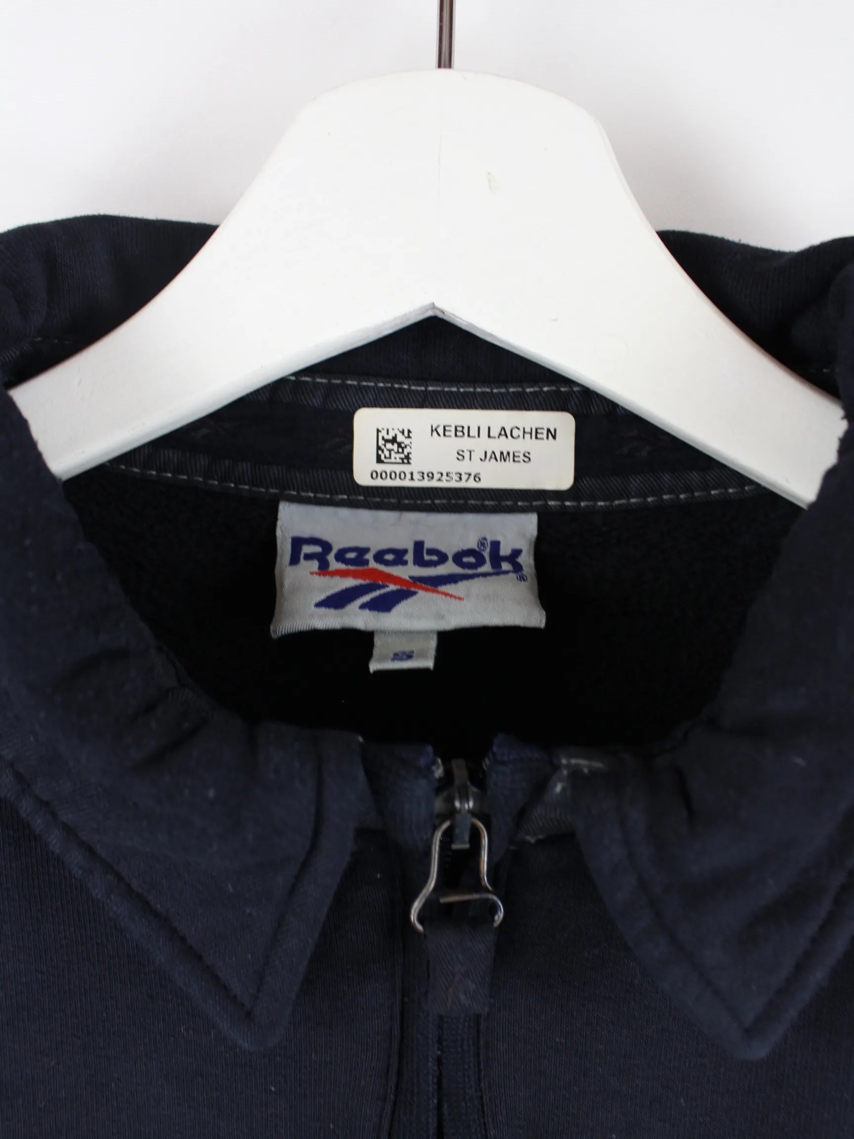 Sweater aus dem Hause Reebok mit halbem Reißverschluß in Größe S aus den 90'ern. Er ist aus einer Baumwollmischung gefertigt und in Schwarz auf Lager.