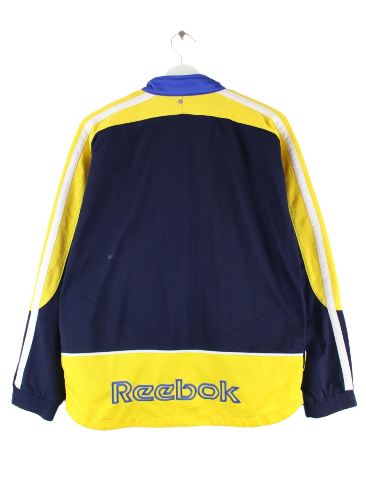 Trainingsjacke vom Brand Reebok in Größe L. Sie ist aus Synthetik und in Blau im Angebot.