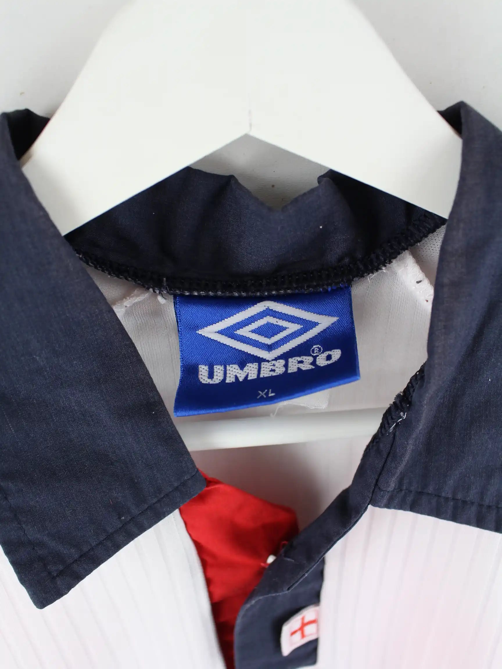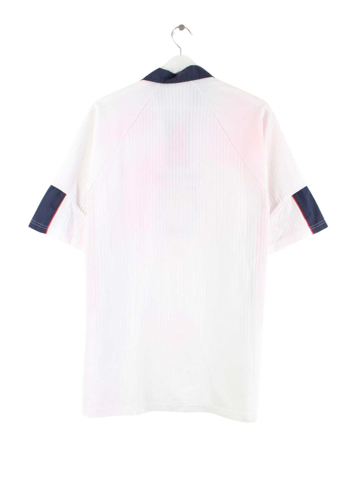 Weißes Trikot von Umbro in Größe XL. Es ist aus Synthetik hergestellt. Den Zustand würden wir als 'In Ordnung' bezeichnen (vergl. Bilder).
