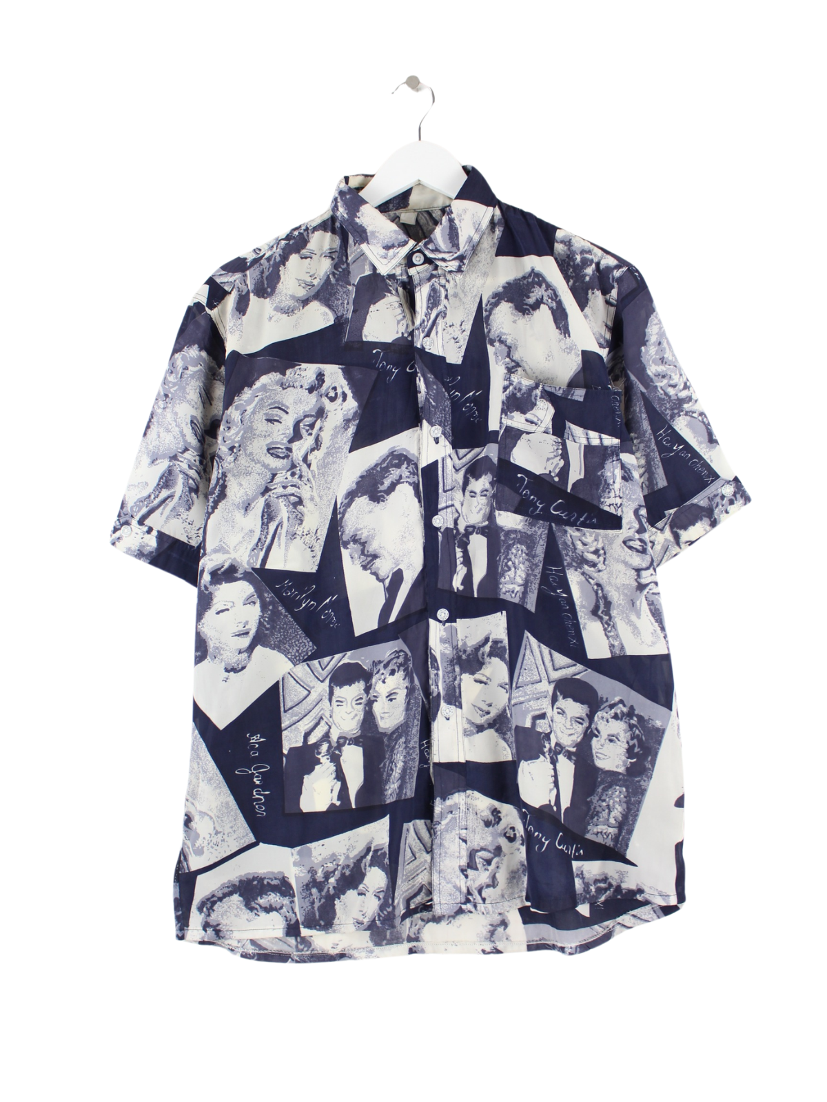 Blaues Vintage Freizeit Hemd in Größe L. Es ist aus Synthetik angefertigt und in gutem Zustand im Bestand.