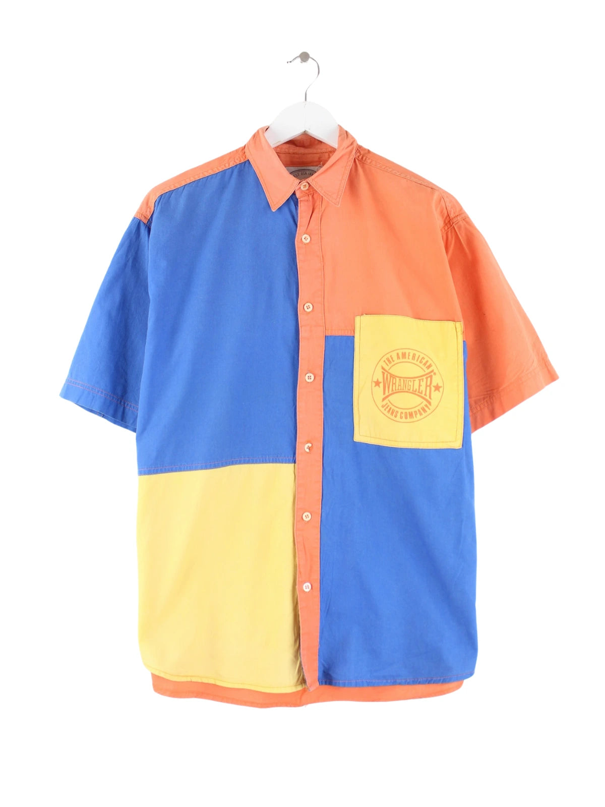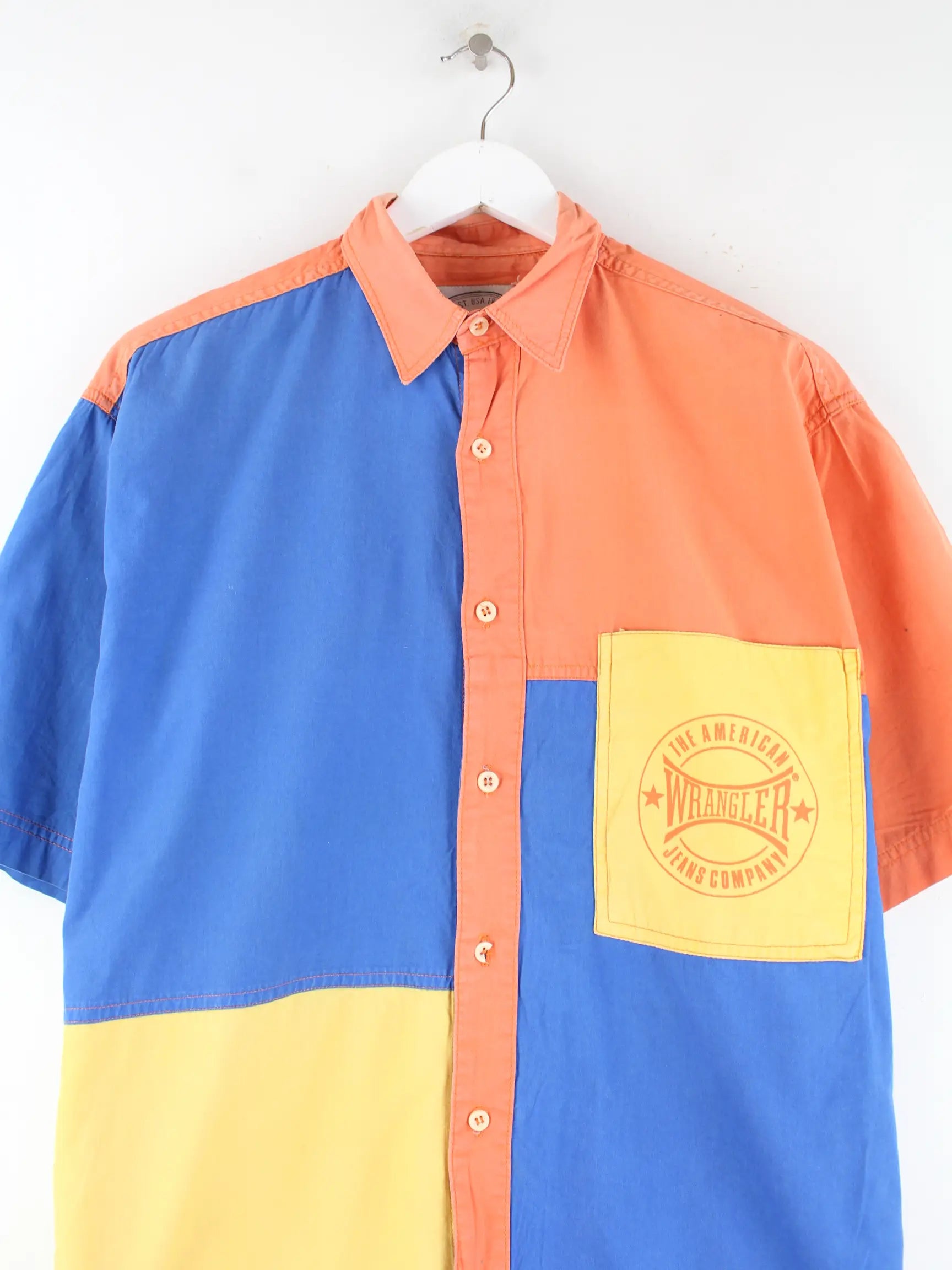 Freizeit Hemd vom Brand Wrangler in Größe XL aus den 90'ern. Es ist aus Baumwolle gefertigt und in bunten Farben im Bestand. Mit seltenem Vintage Print.