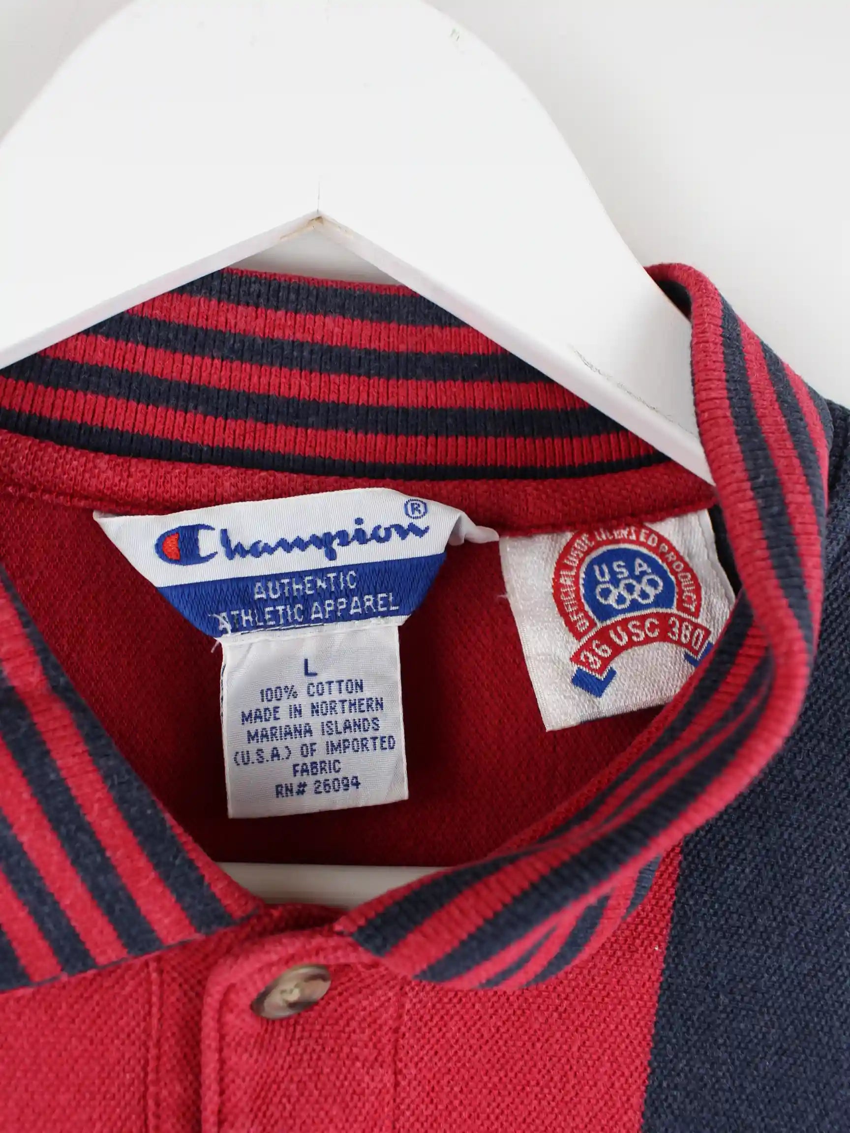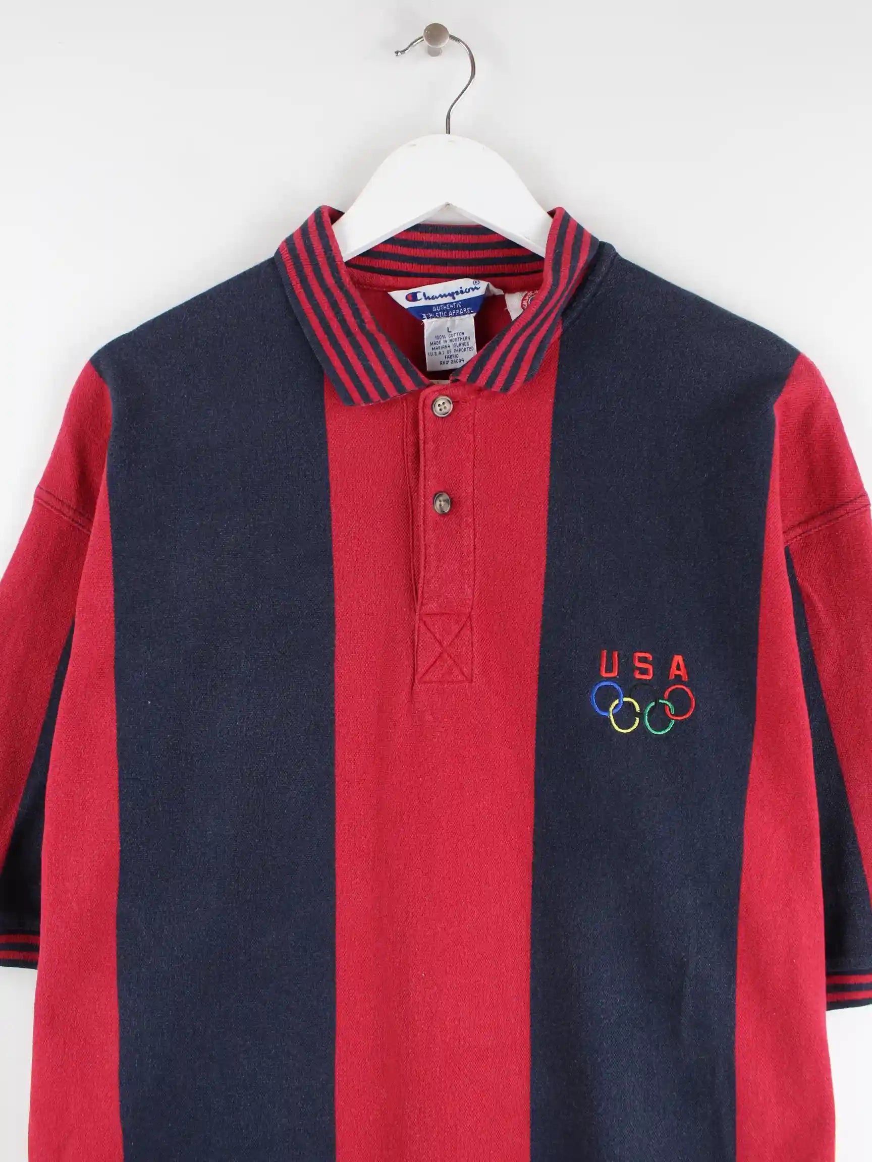 Champion 1996 Vintage Olympia Atlanta Striped Polo Rot L