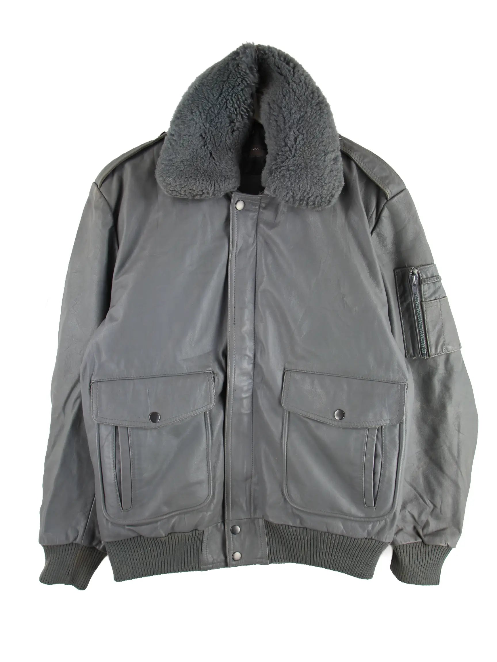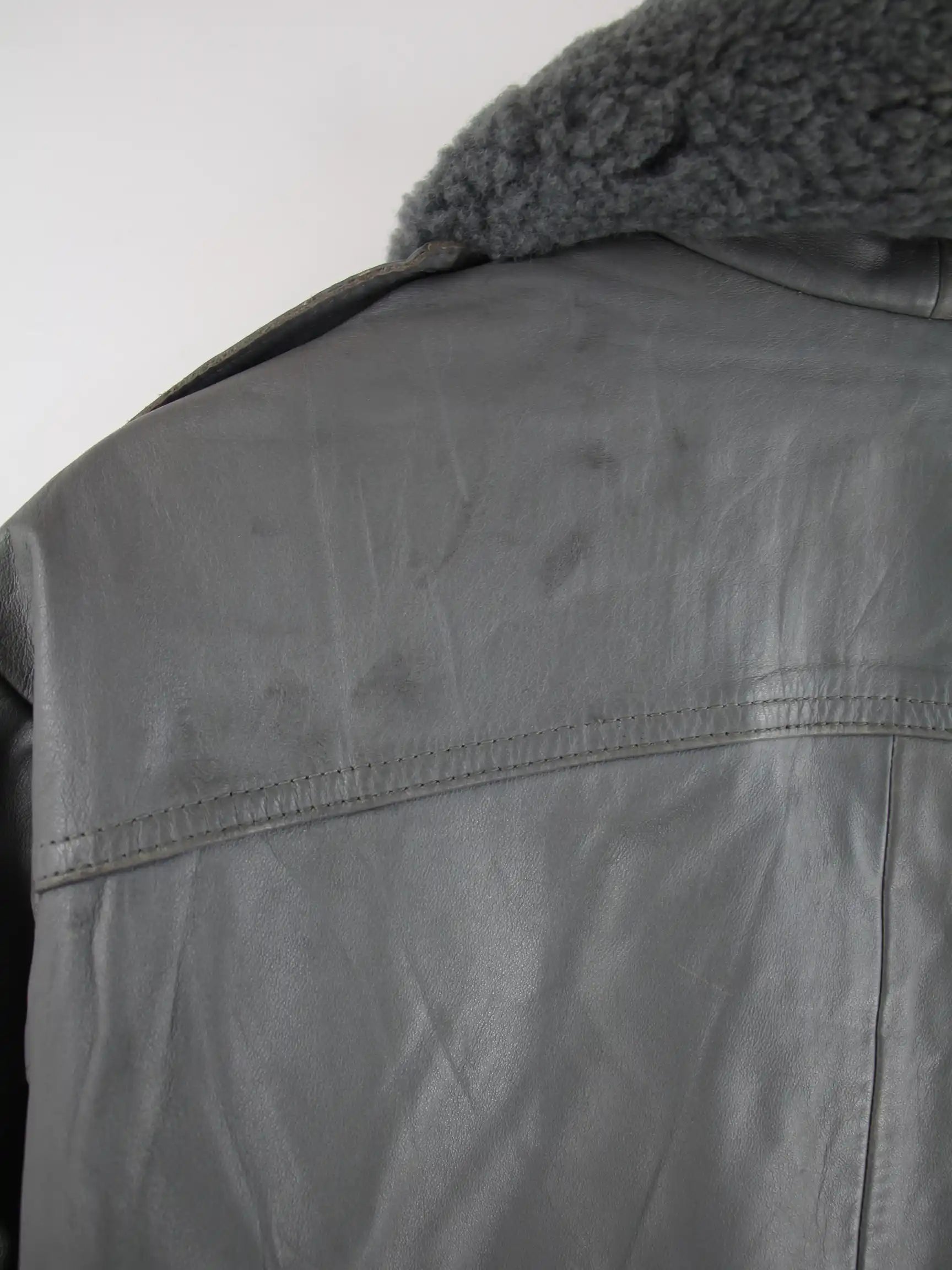 Vintage 00s Sherpa Leder Jacke Grau S