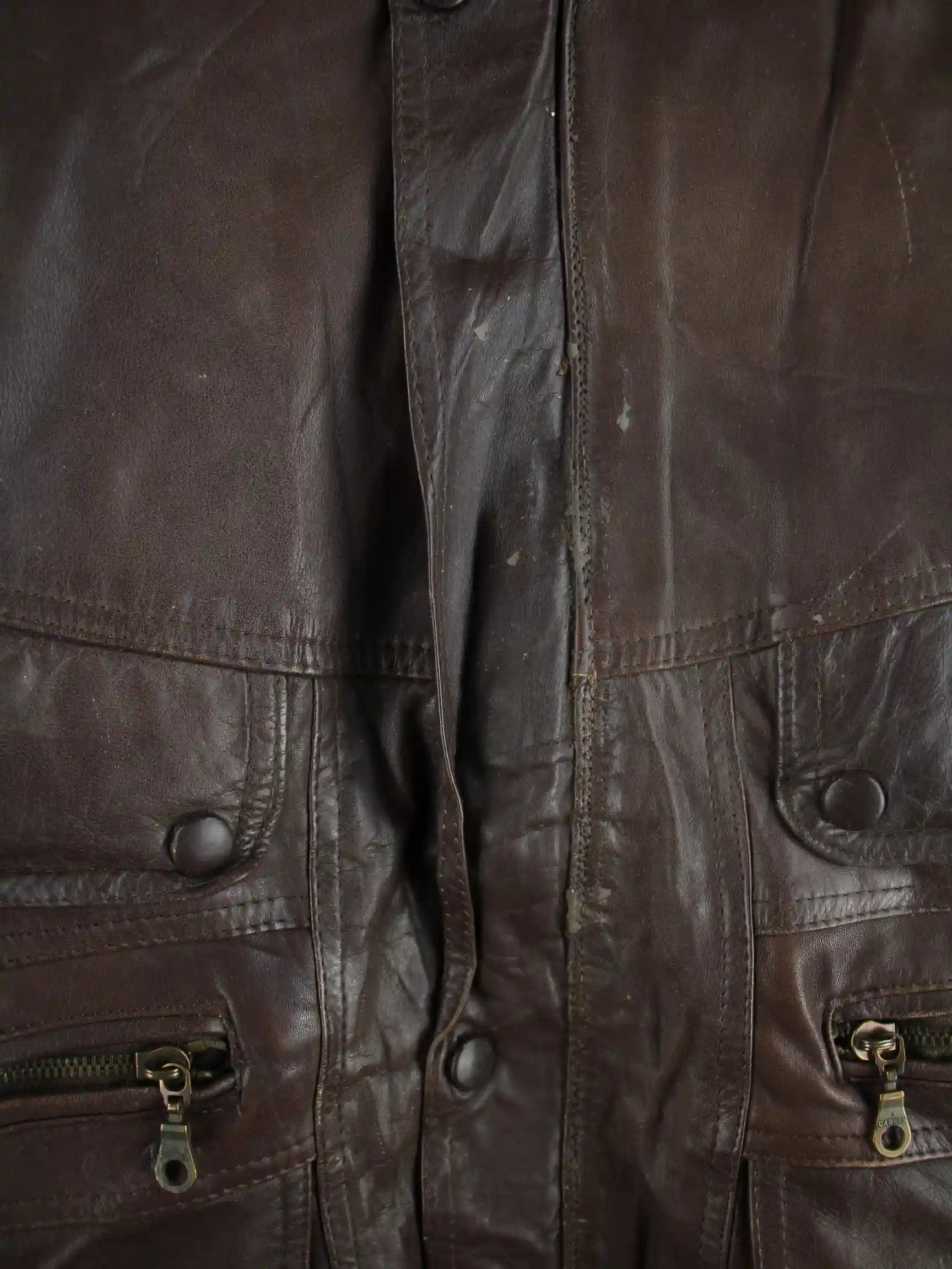 Braune Vintage Jacke aus den 90'ern in Größe XL. Sie ist aus Leder gefertigt. Den Zustand würden wir als 'In Ordnung' bezeichnen (vergl. Bilder).