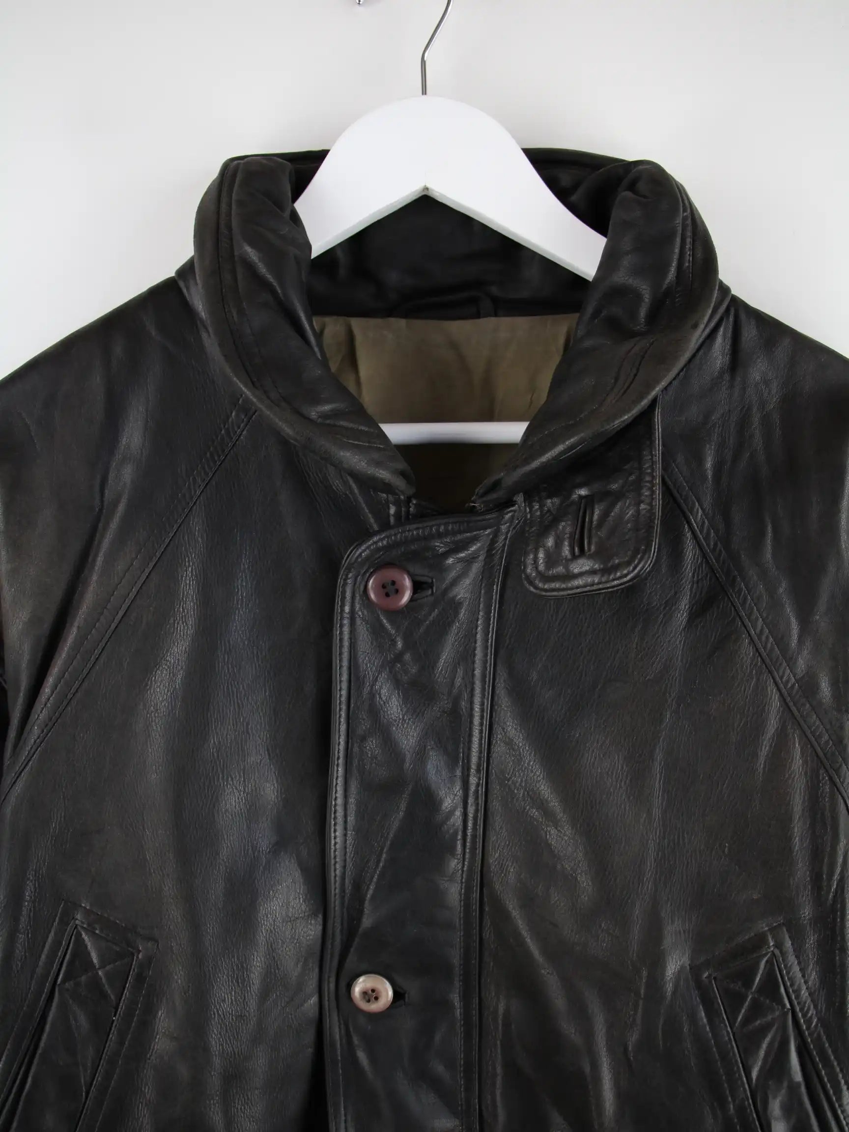 Schwarze Vintage Jacke aus den 90'ern in Größe XL. Sie ist aus Leder gemacht und in sehr gutem Zustand zu bekommen.