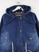 Vintage Jacke in Größe L aus den 90'ern. Sie ist aus Baumwolle angefertigt und in Blau lieferbar.
