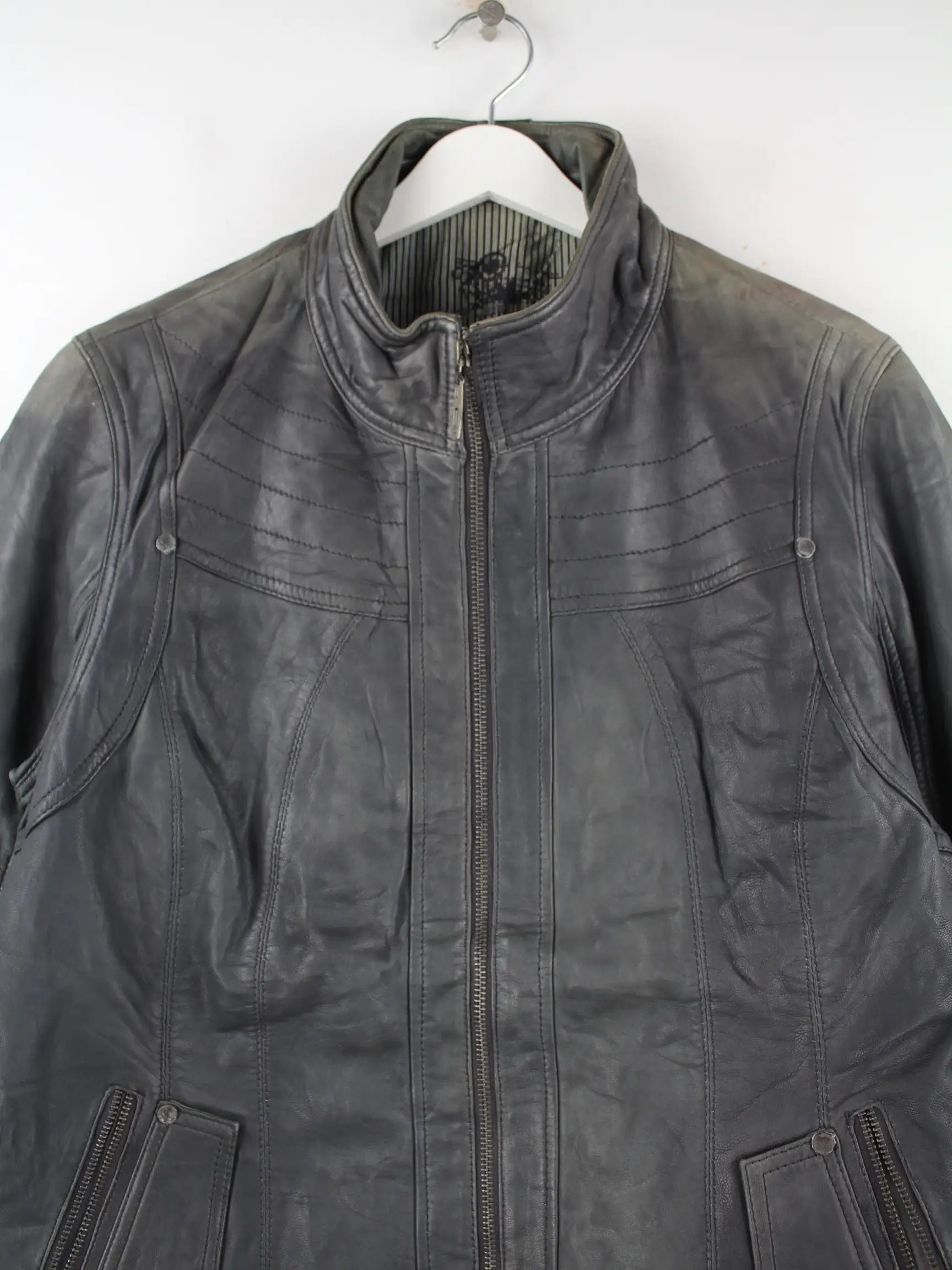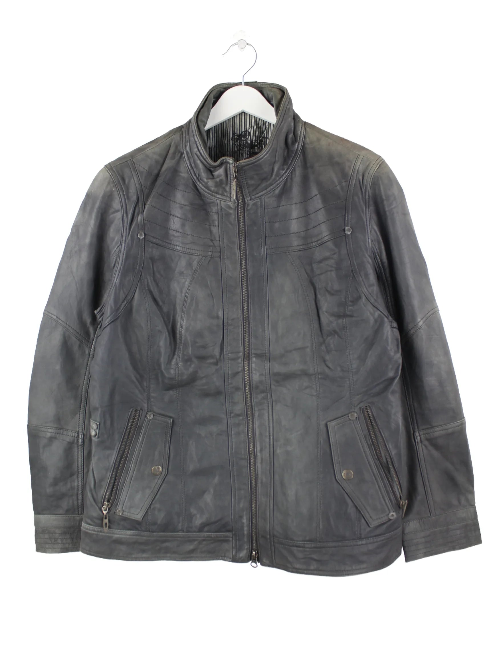 Vintage Damen 90s Leder Biker Jacke Grau XL