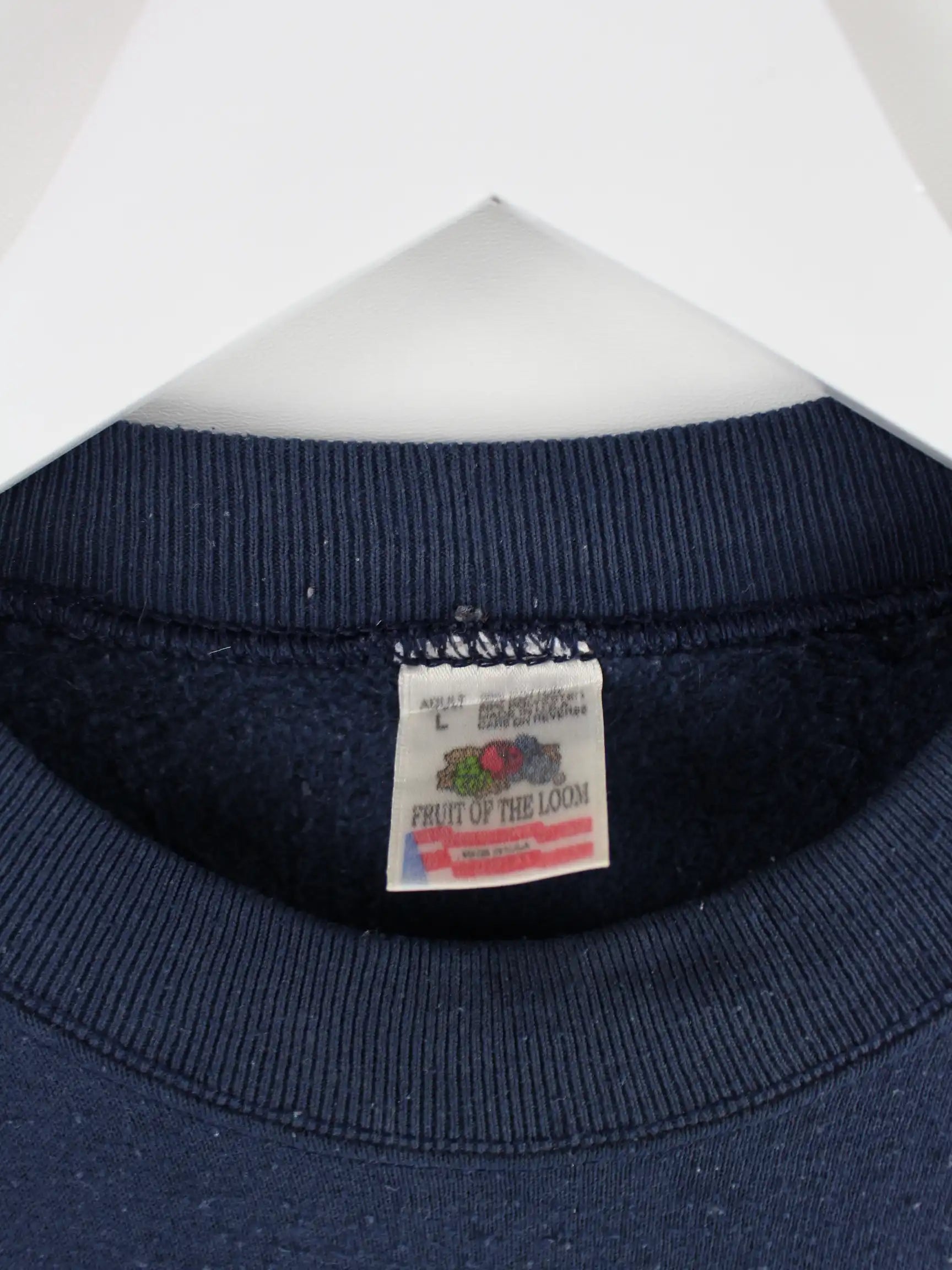 Blauer Sweater der Marke Fruit of the Loom aus den 90'ern in Größe L. Er ist aus einer Baumwollmischung hergestellt und in gutem Zustand lieferbar.