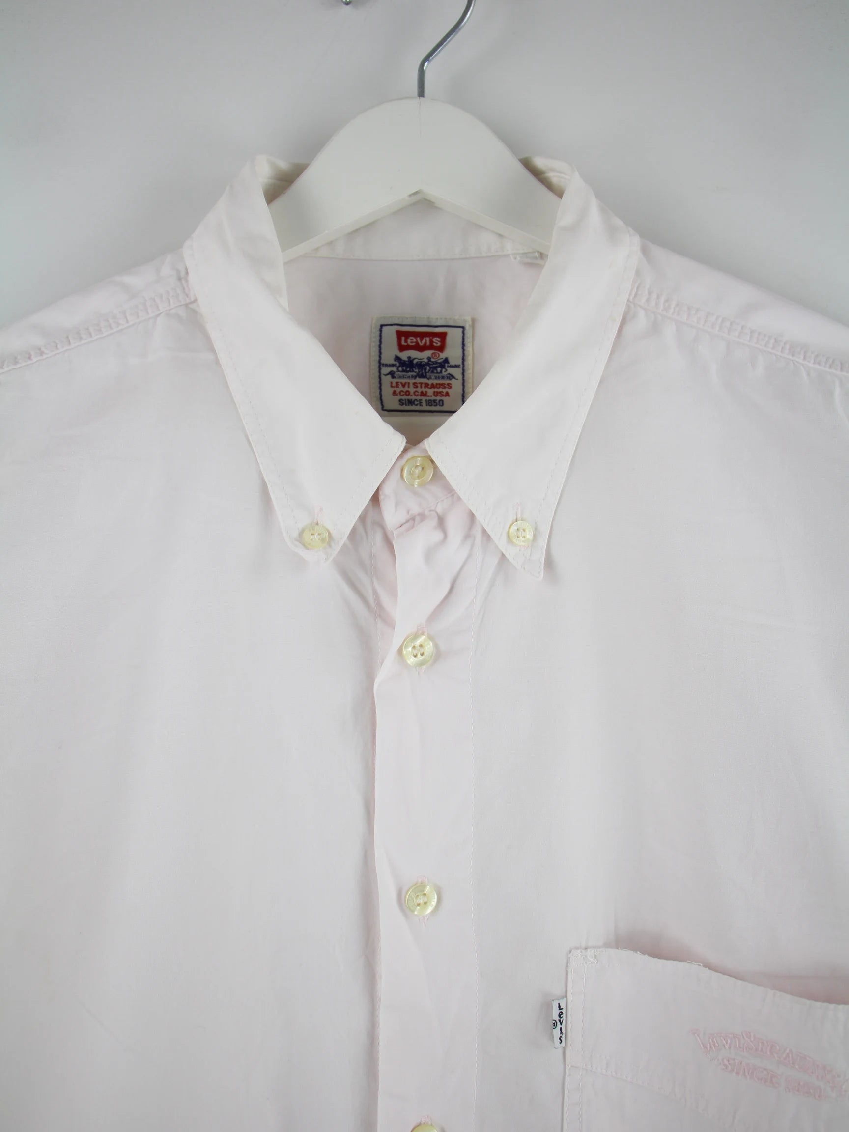 Weißes Hemd der Brand Levi's in Größe L. Es ist aus Baumwolle hergestellt. Den Zustand würden wir als 'In Ordnung' bezeichnen (vergl. Bilder).