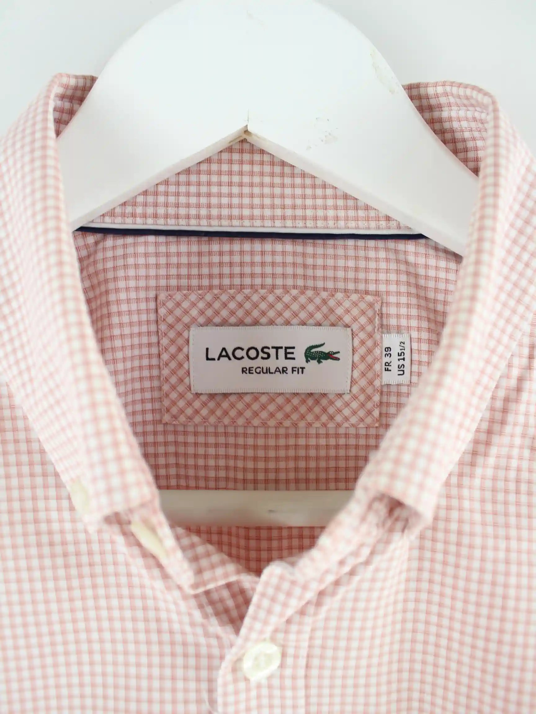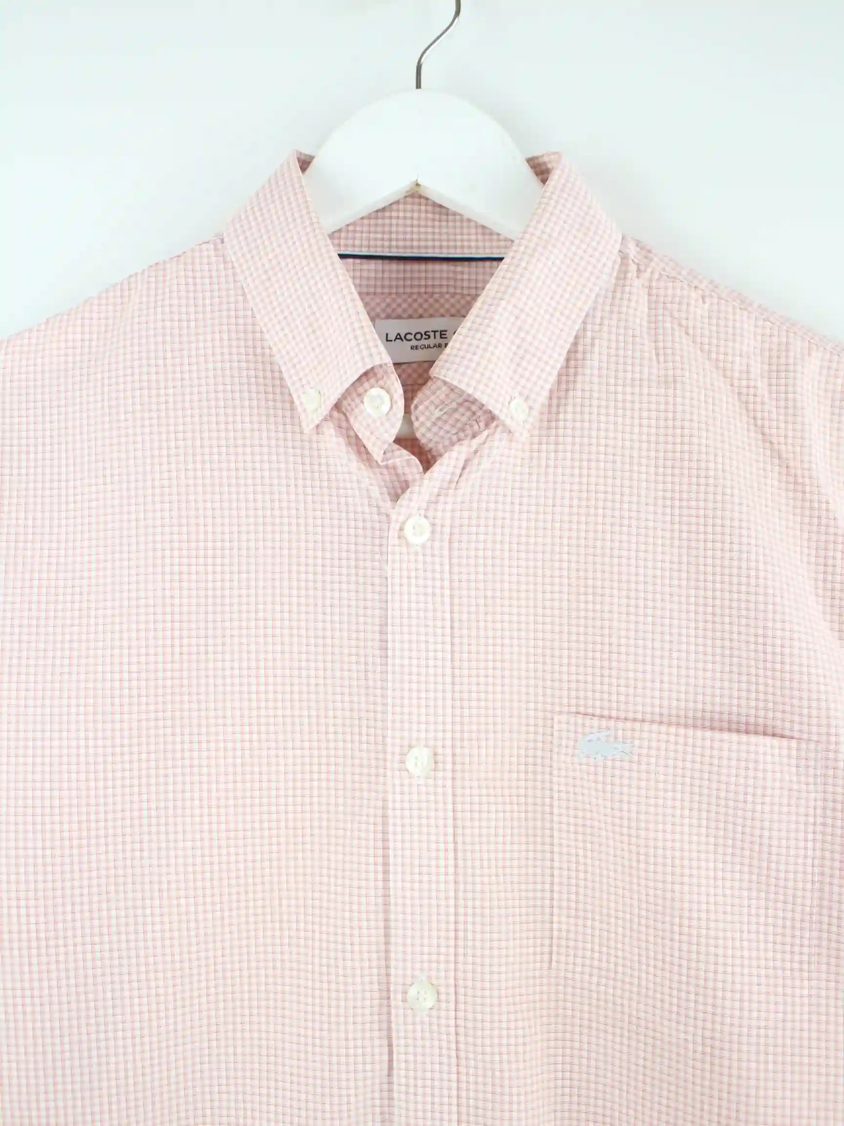 Rosafarbenes Hemd des Labels Lacoste in Größe M. Es ist aus Baumwolle gefertigt und in sehr gutem Zustand in Stock.
