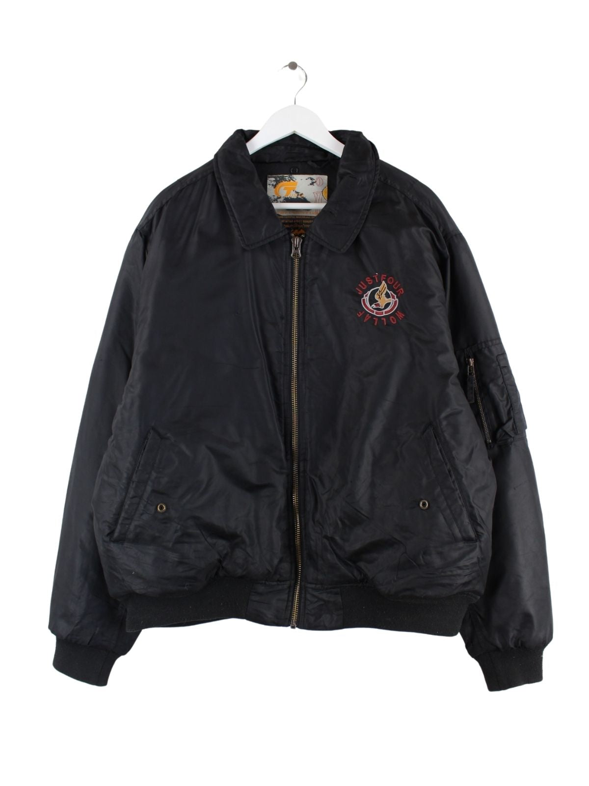 Vintage 90s Seiden Bomber Jacke Blau L