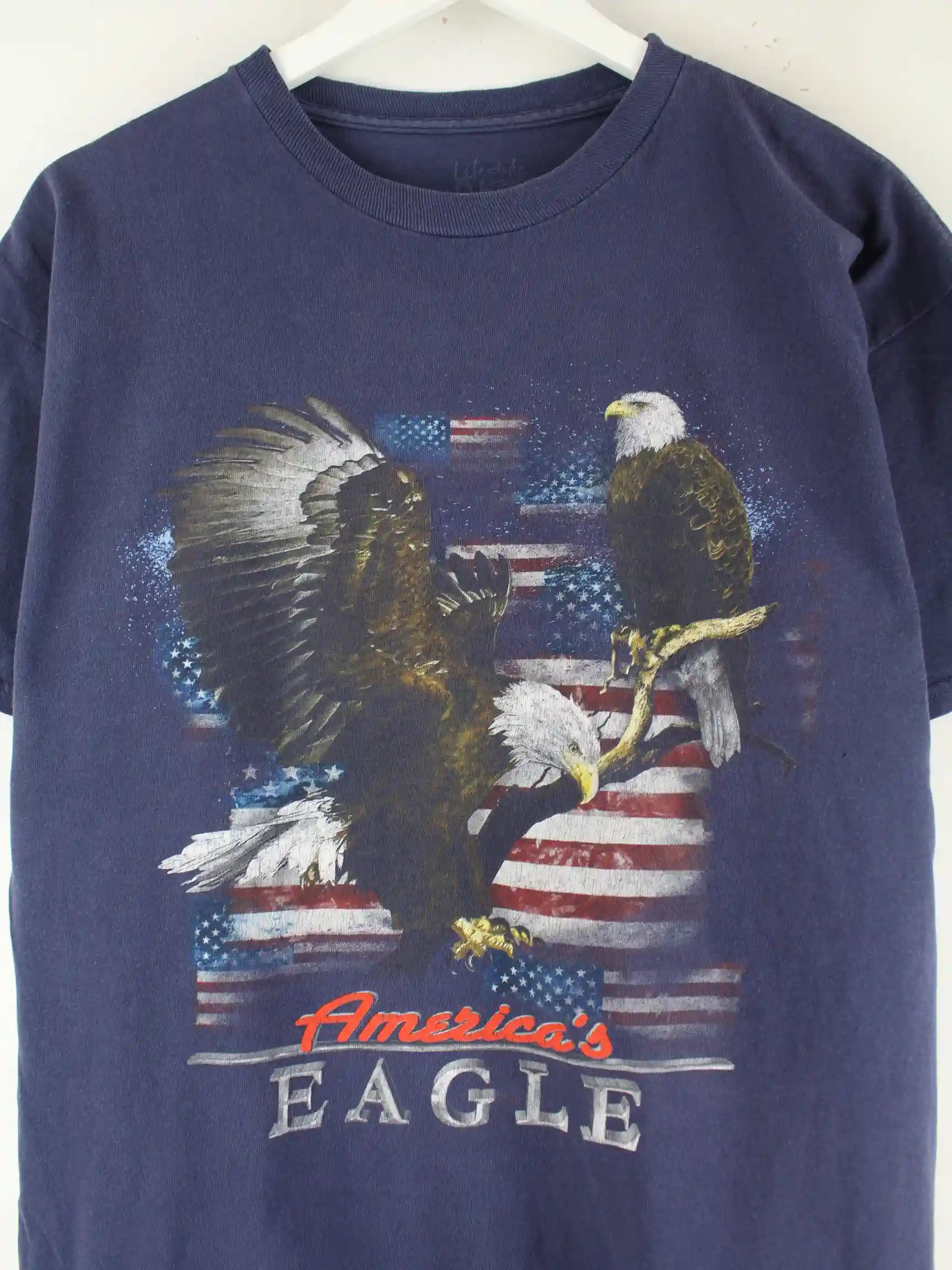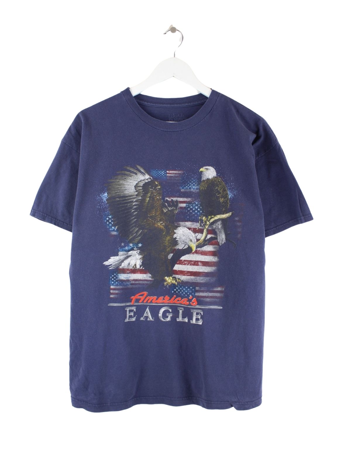 Vintage Damen America Eagle Print T-Shirt Blau XL