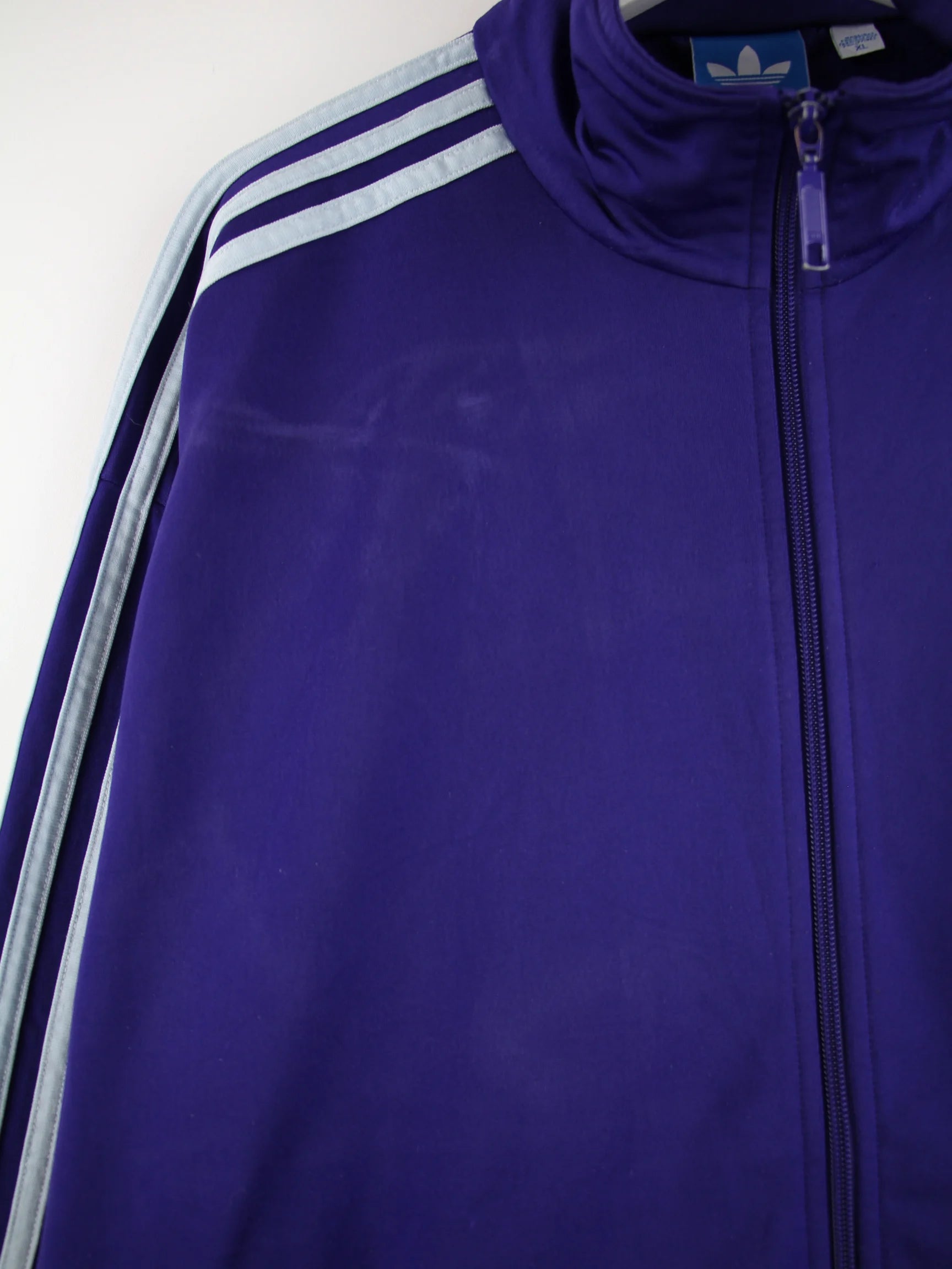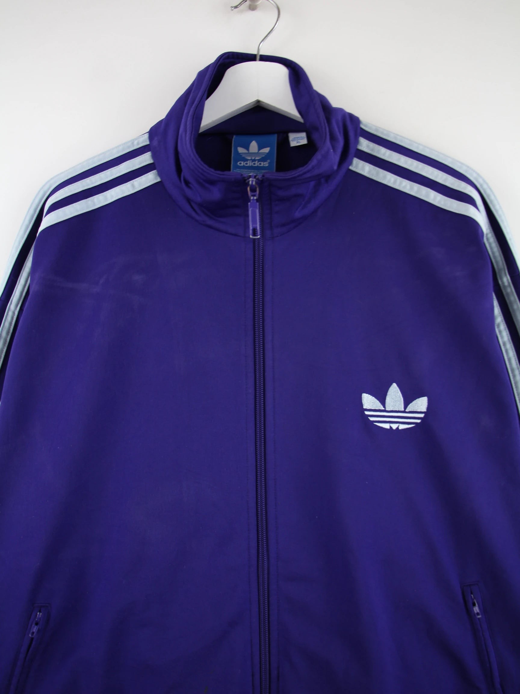 Trainingsjacke aus dem Hause Adidas in Größe XL. Sie ist aus Synthetik angefertigt und in Lila in Stock.