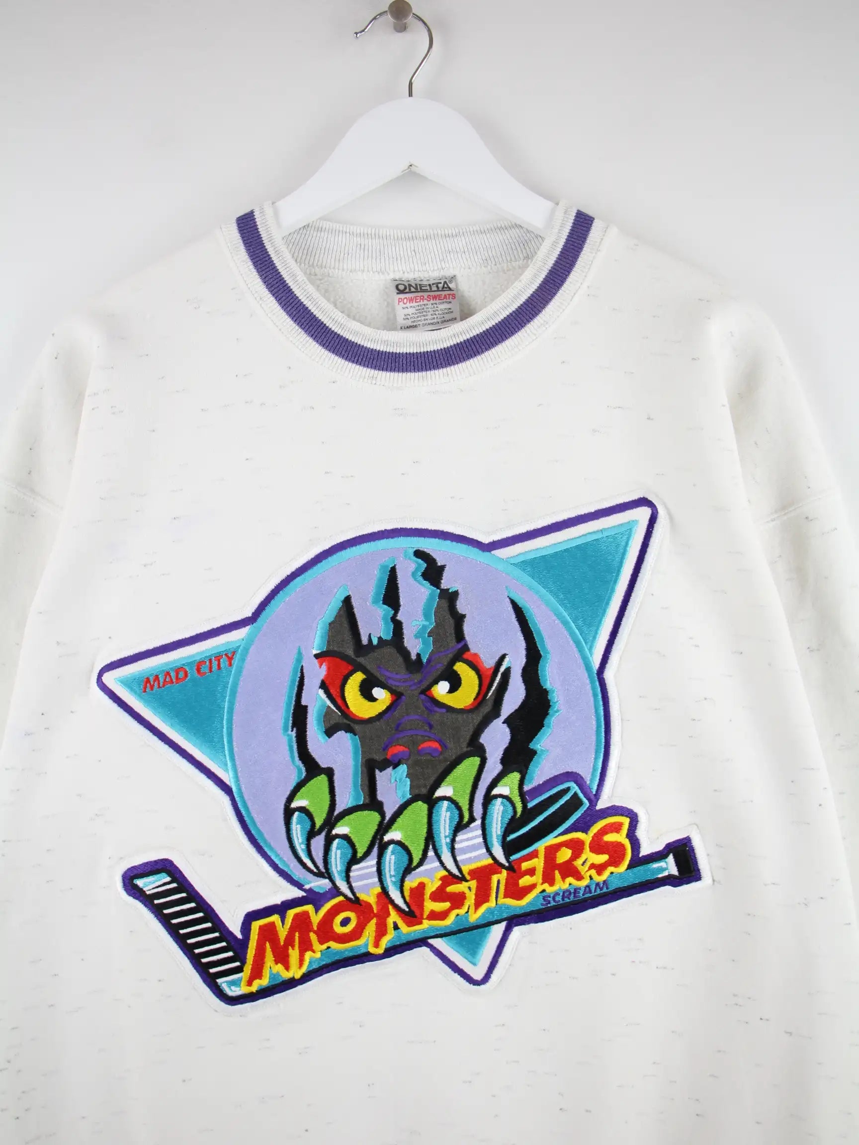 Oneita 90s Vintage Monster Scream Sweater Grau XL