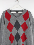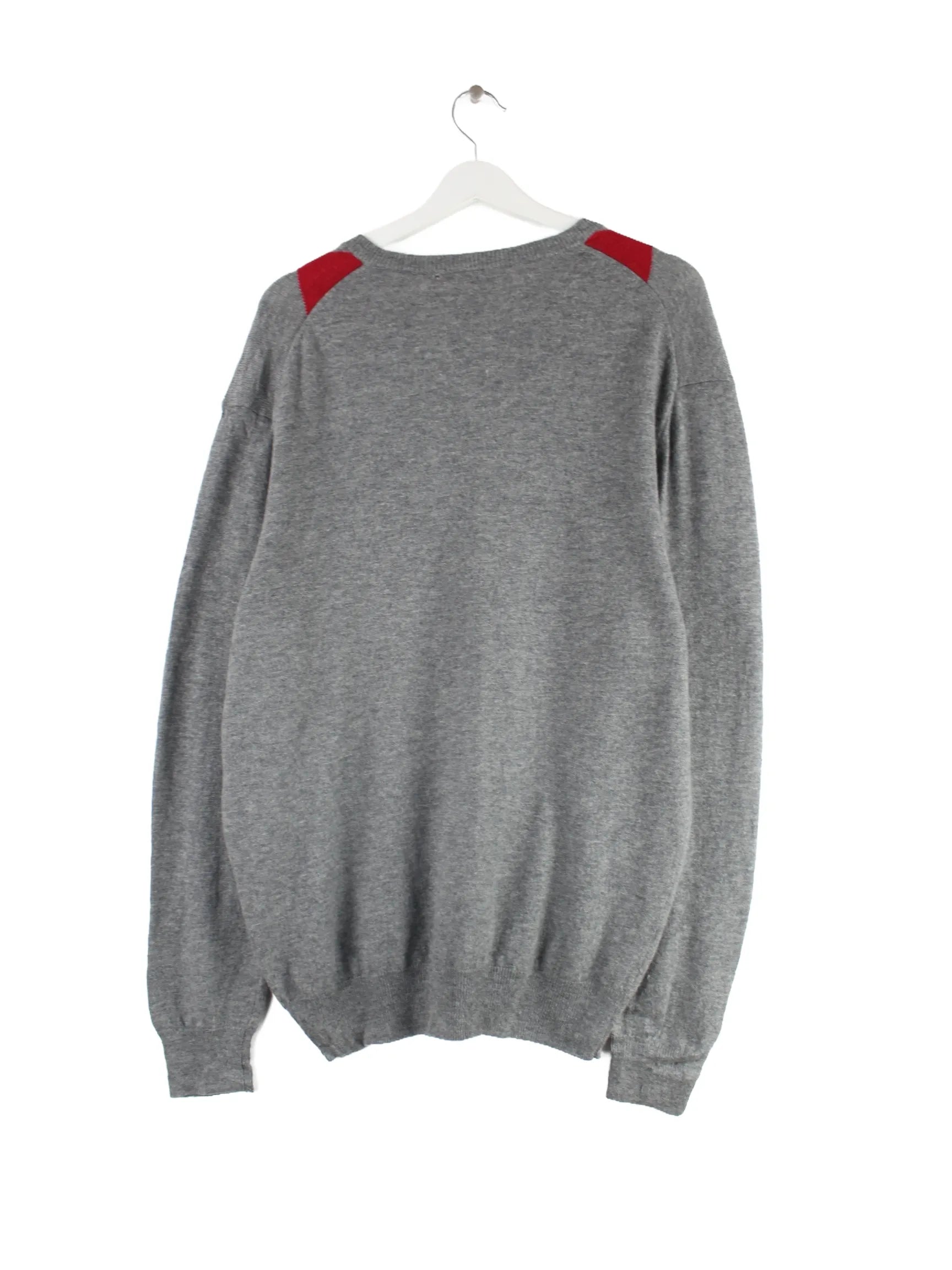 Vintage 00s Striped V-Neck Pullover Grau L
