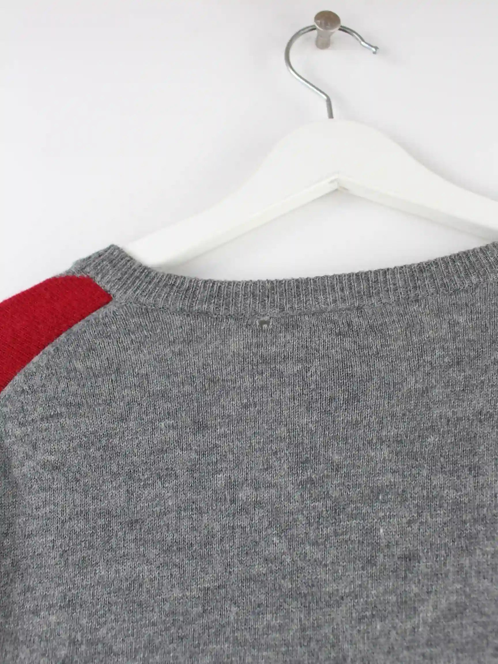 Grauer Vintage Pullover in Größe L. Er ist aus einer Wollmischung gemacht und in gutem Zustand bei uns zu bekommen.