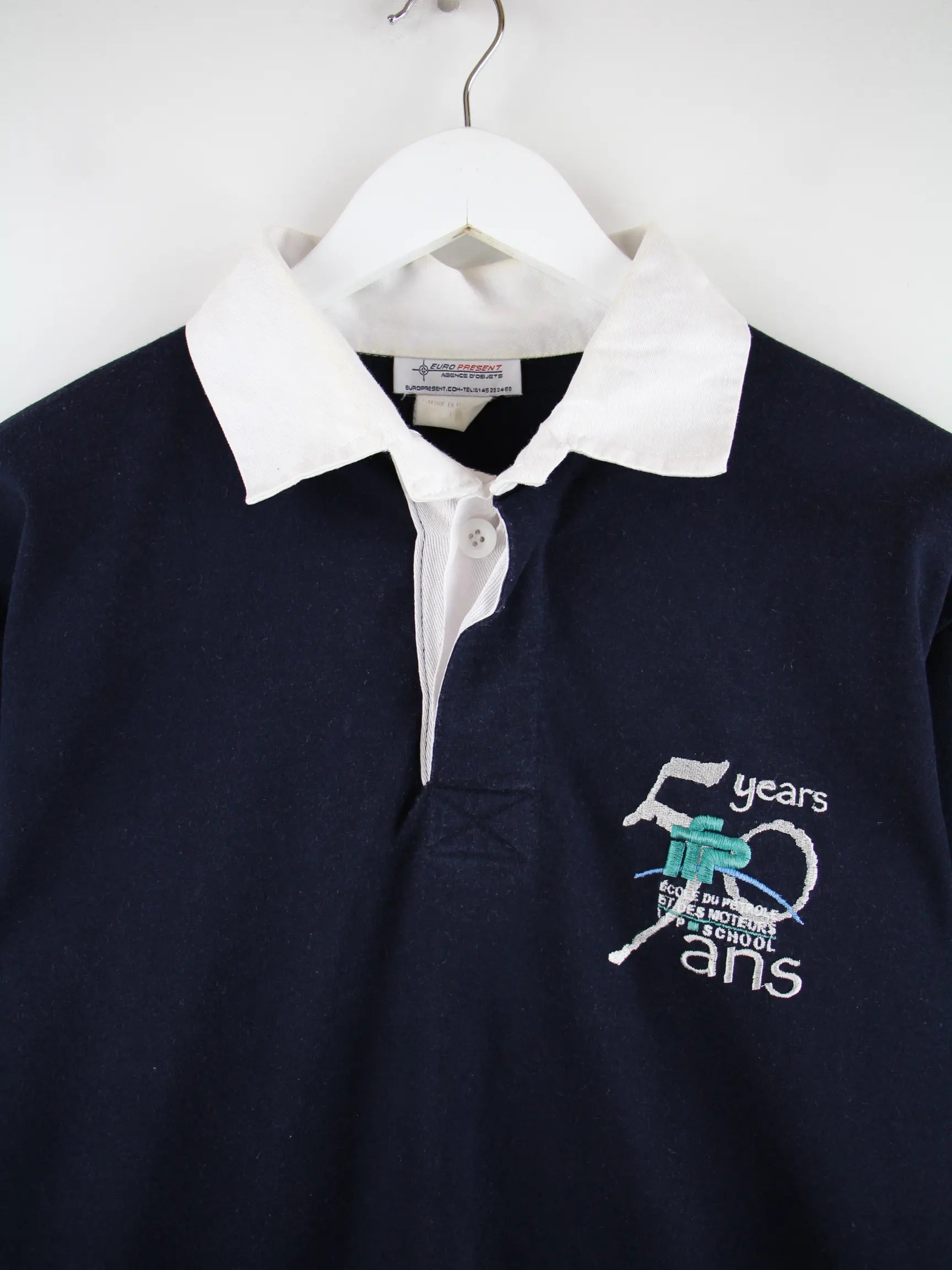 Vintage Langarm Polo Blau L