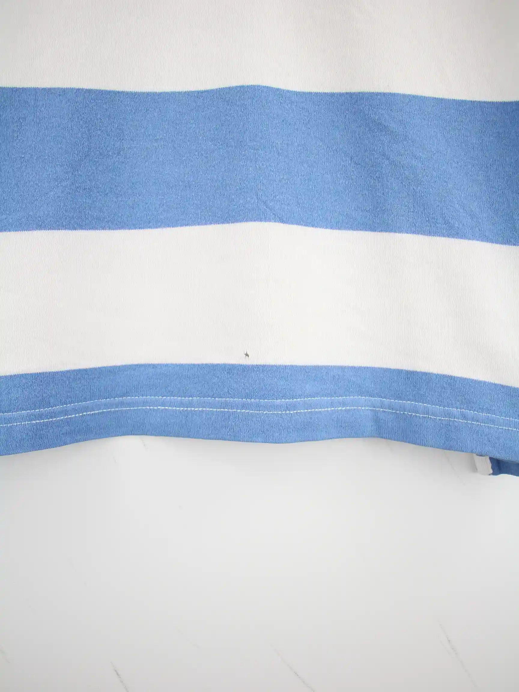 Weiß-Blaues Vintage Poloshirt in Größe M. Es ist aus Baumwolle hergestellt und in gutem Zustand zu bekommen.