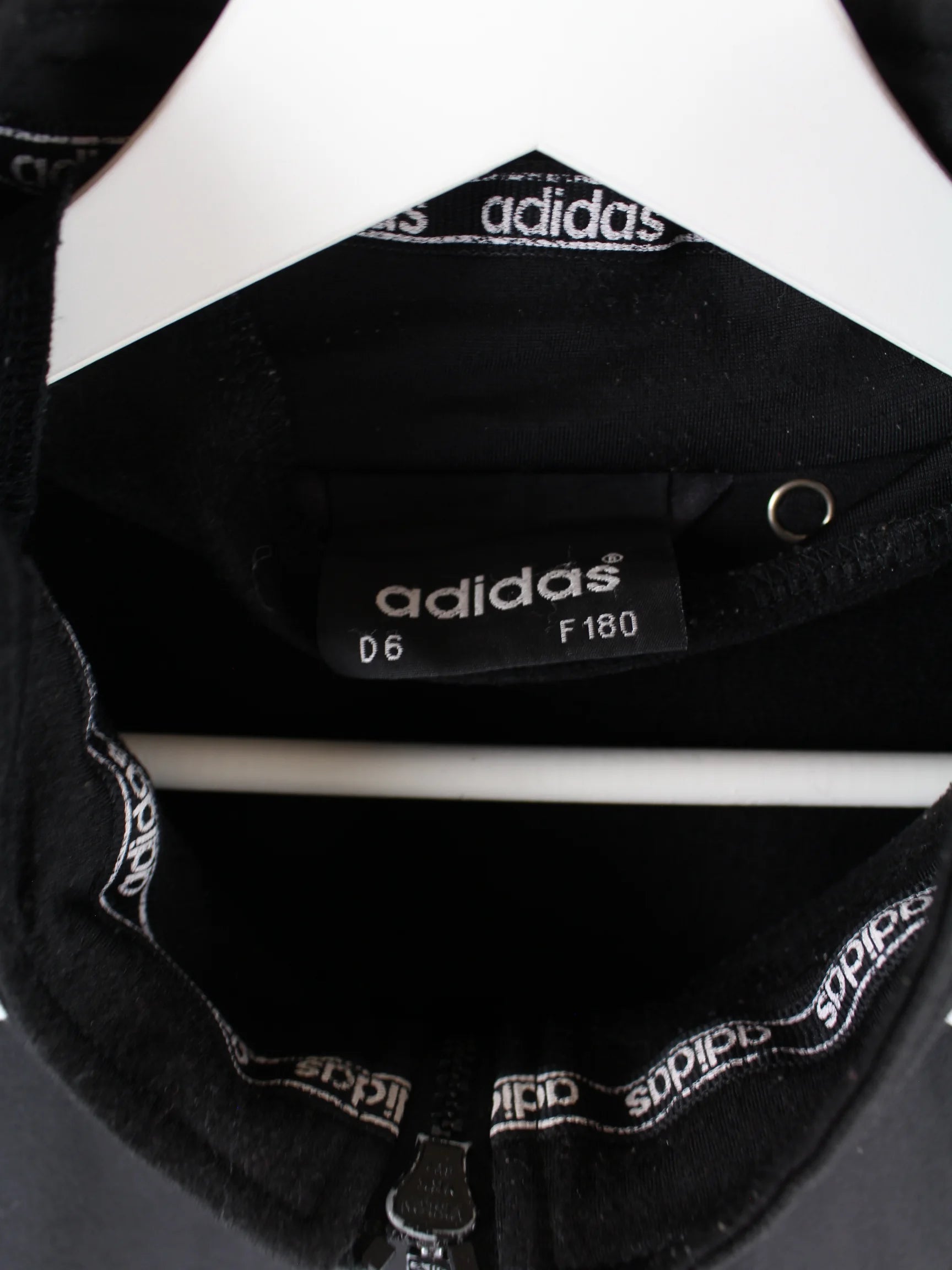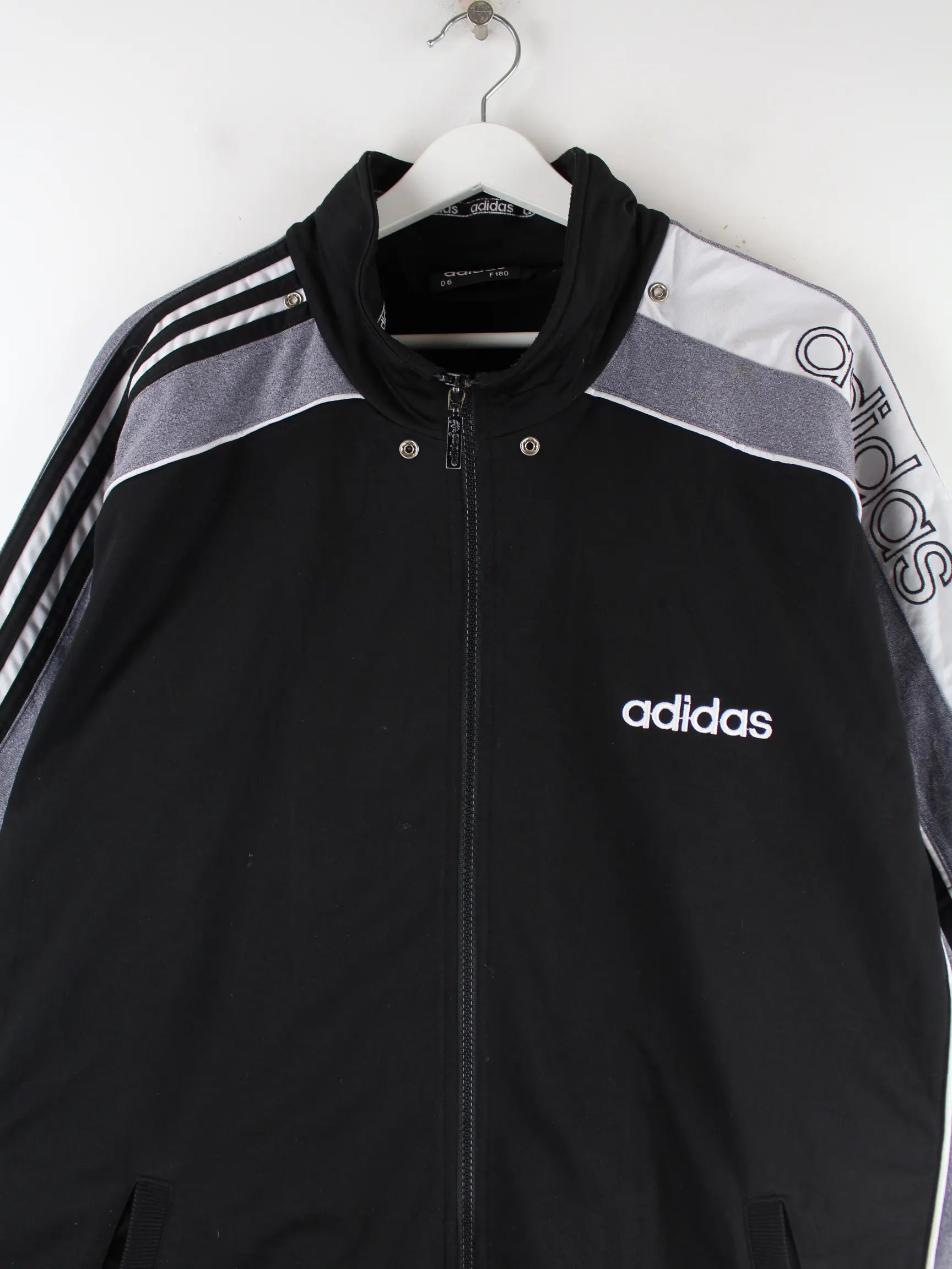 Schwarze Trainingsjacke mit Stick der Marke Adidas aus den 90'ern in Größe XXL. Sie ist aus Synthetik . Den Zustand würden wir als 'In Ordnung' bezeichnen (vergl. Bilder).