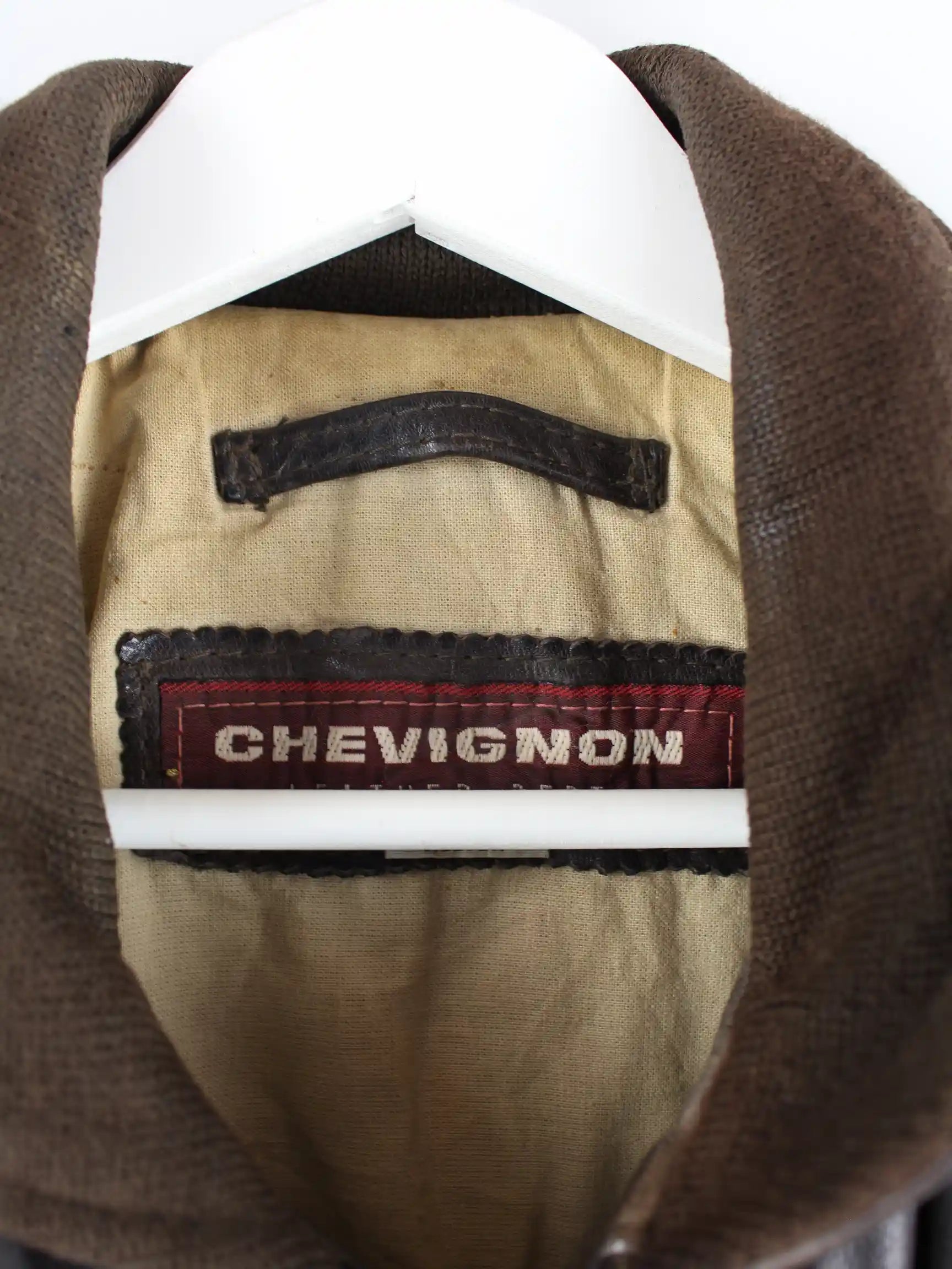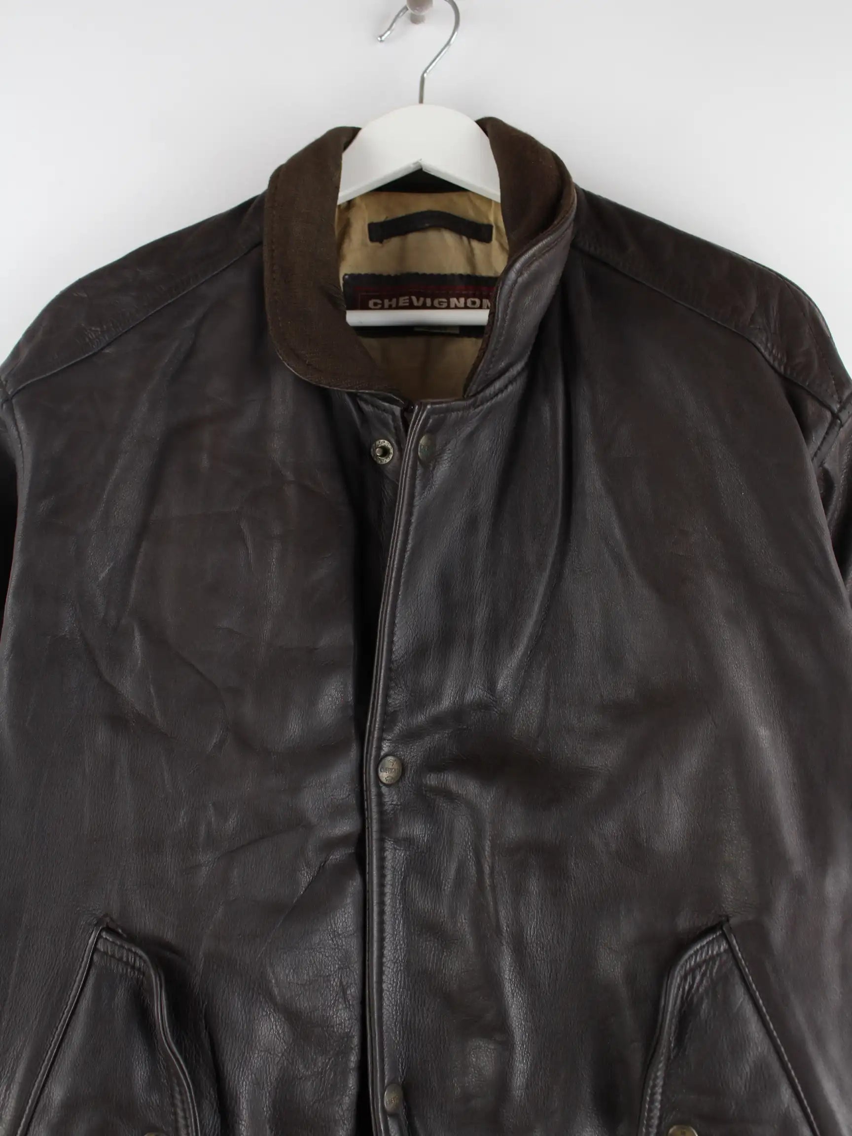 Jacke von Chevignon in Größe XL aus den 90'ern. Sie ist aus Leder produziert und in braun vorrätig.
