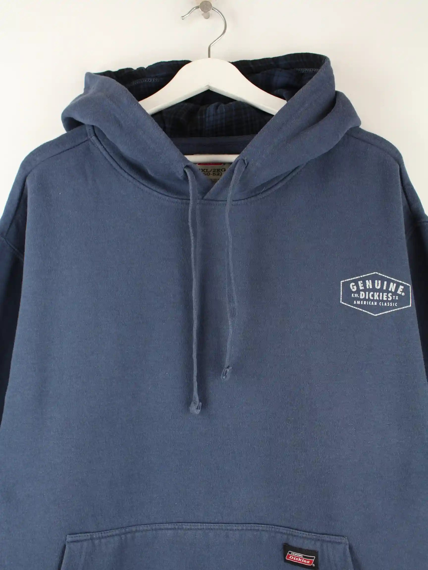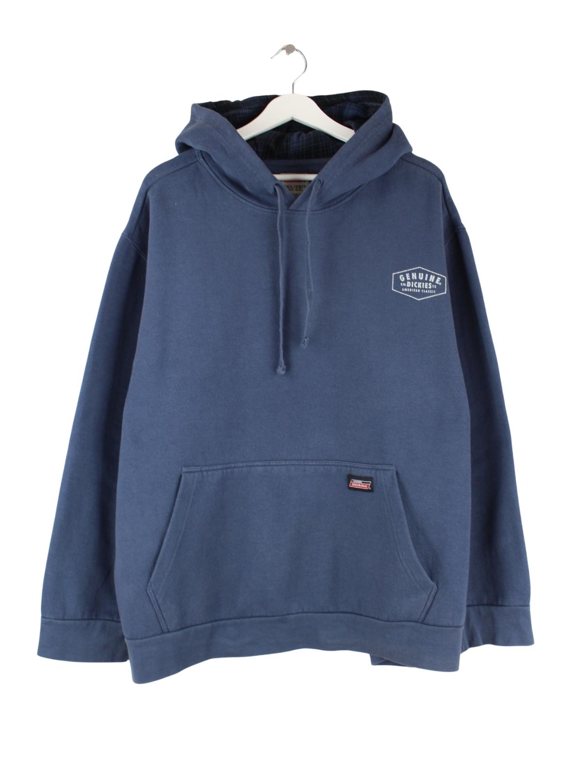 Blauer Hoodie vom Label Dickies in Größe XXL. Er ist aus einer Baumwollmischung produziert und in sehr gutem Zustand in Stock.