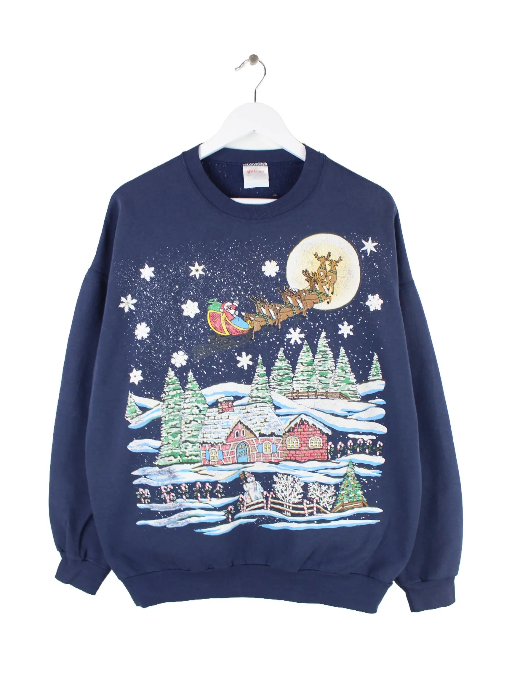 Hanes 90s Vintage Christmas Print Sweater Blau XL
