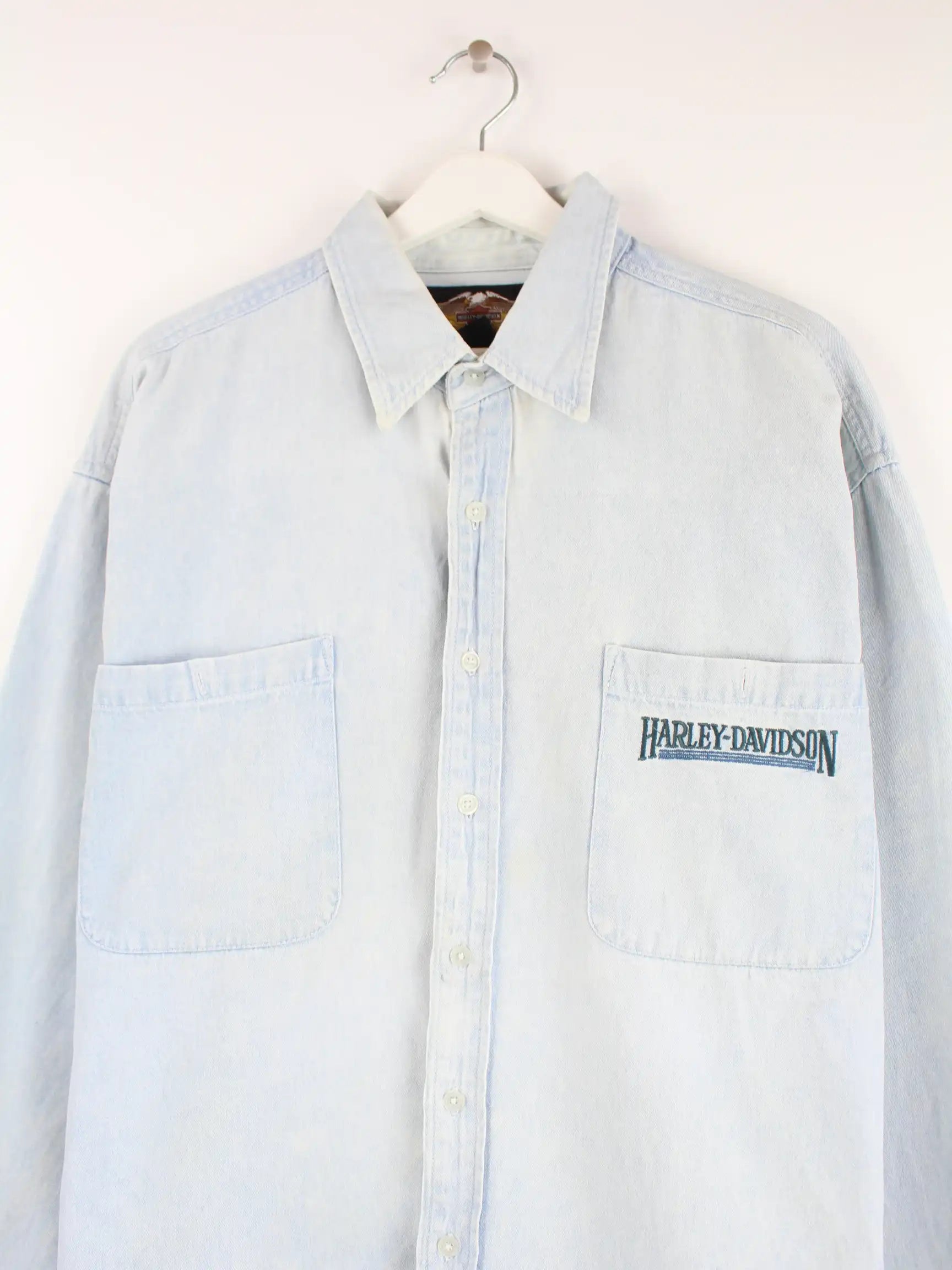 Freizeit Hemd des Labels Harley Davidson in Größe XL. Es ist aus Baumwolle produziert und in Blau in Stock.