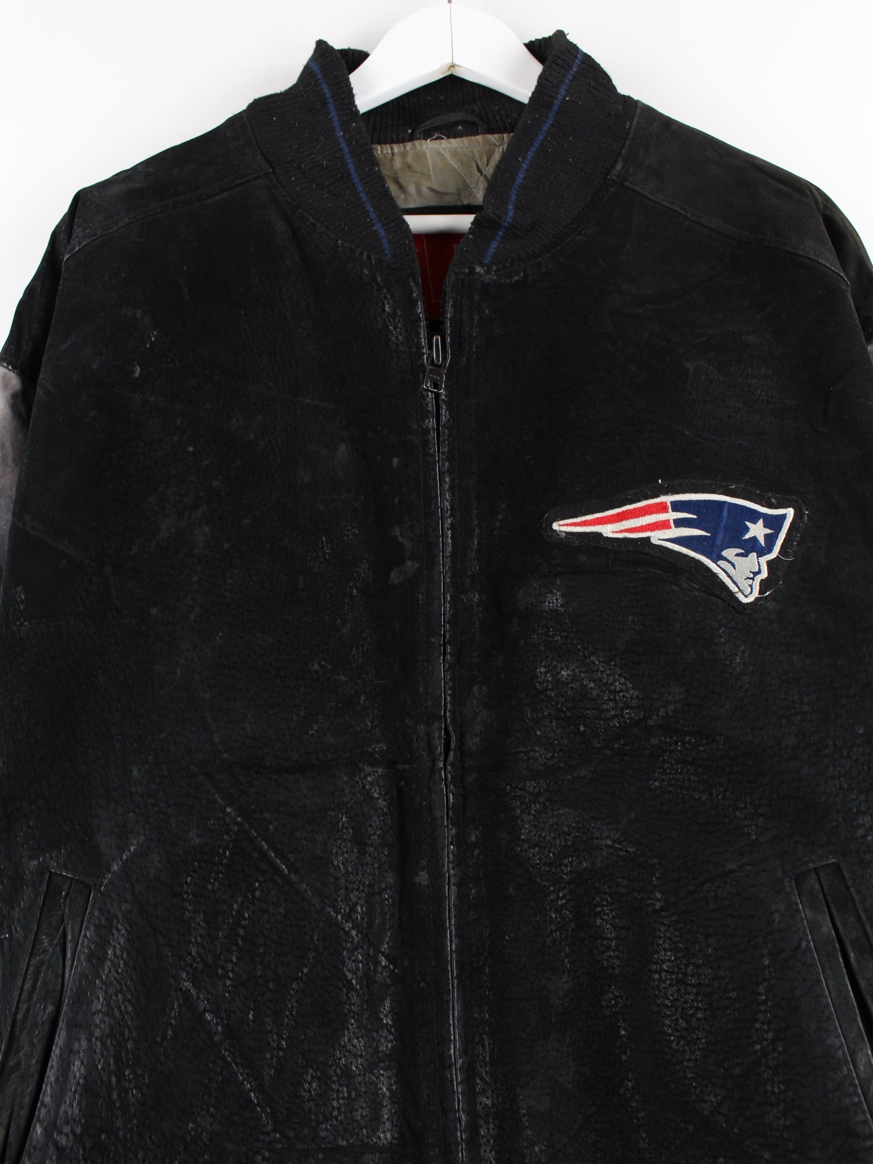 NFL Patriots 90s Vintage Leder Jacke Schwarz XL