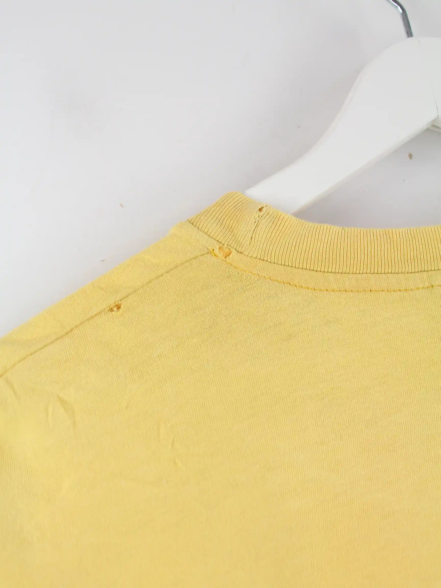 Mängel: Print ausgeblichen, Kragen beschädigt und Löcher an Schulter (siehe Bilder)