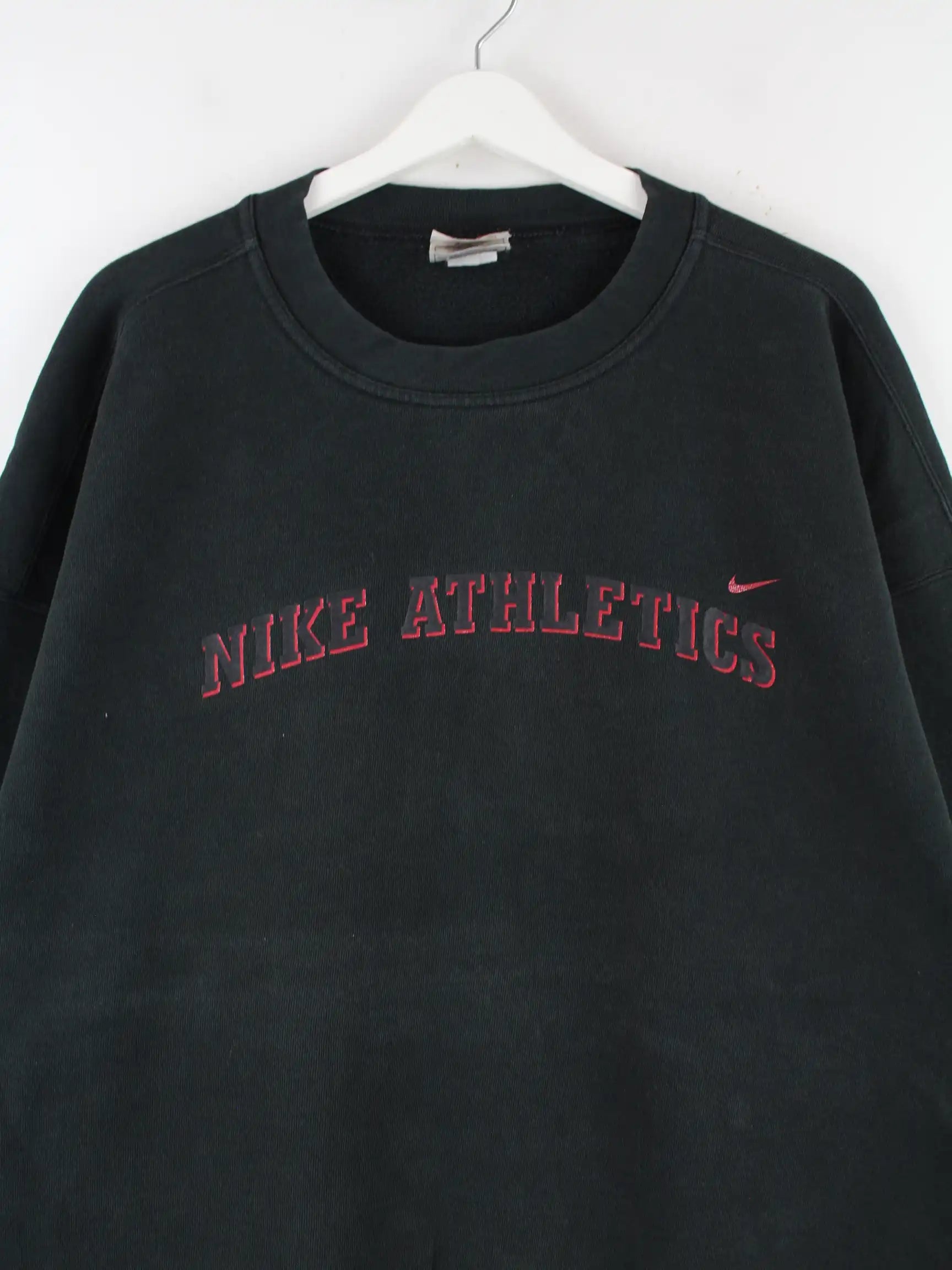 Sweater vom Brand Nike in Größe XXL aus den 90'ern. Er ist aus einer Baumwollmischung und in Schwarz zu haben. Mit tollem Athletics Print.