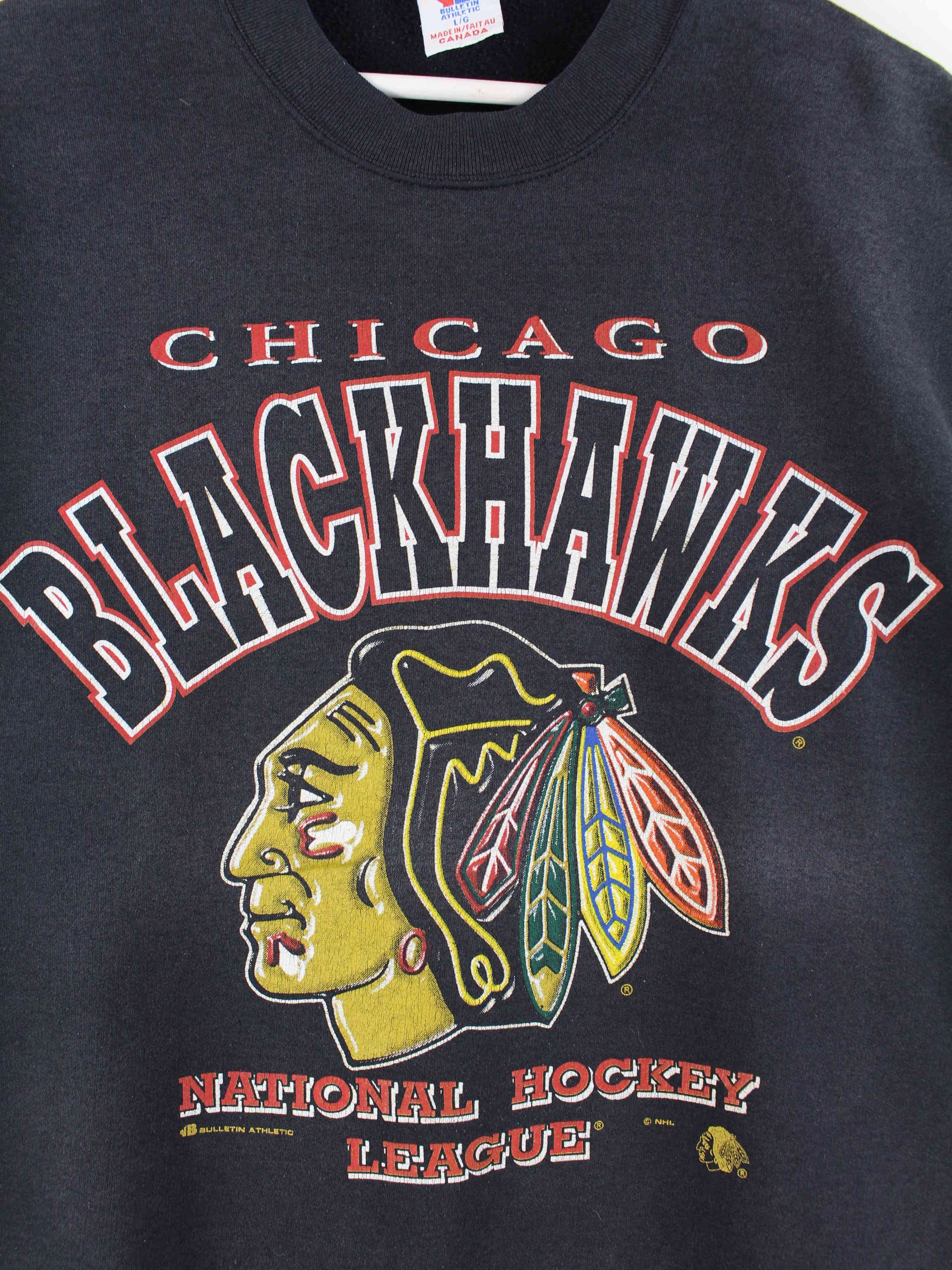 Vintage 80s Blackhawks Print Sweater Schwarz L