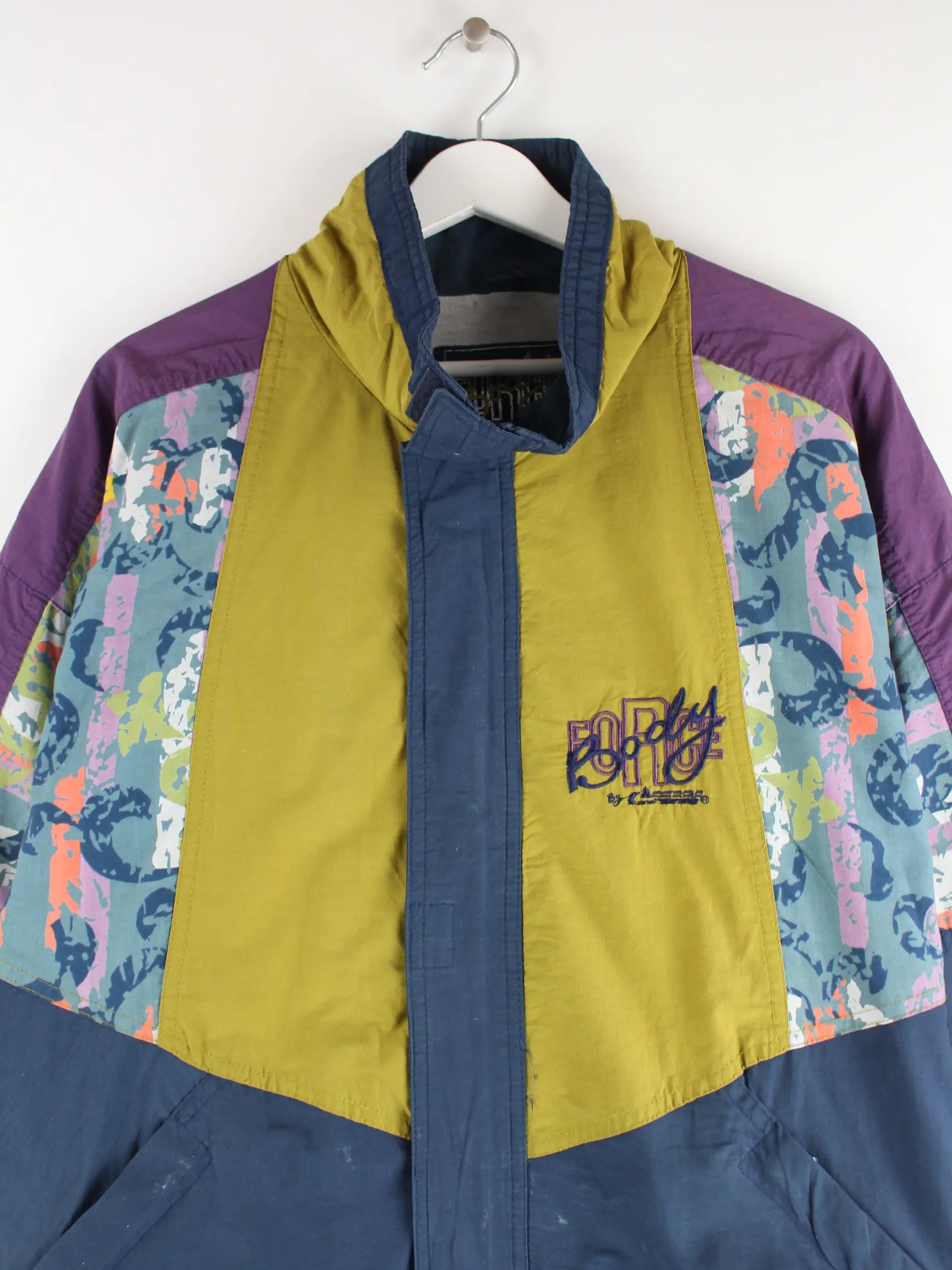 Mehrfarbige Vintage Leichte Jacke aus den 90'ern in Größe L. Sie ist aus Synthetik hergestellt und in gutem Zustand vorrätig.