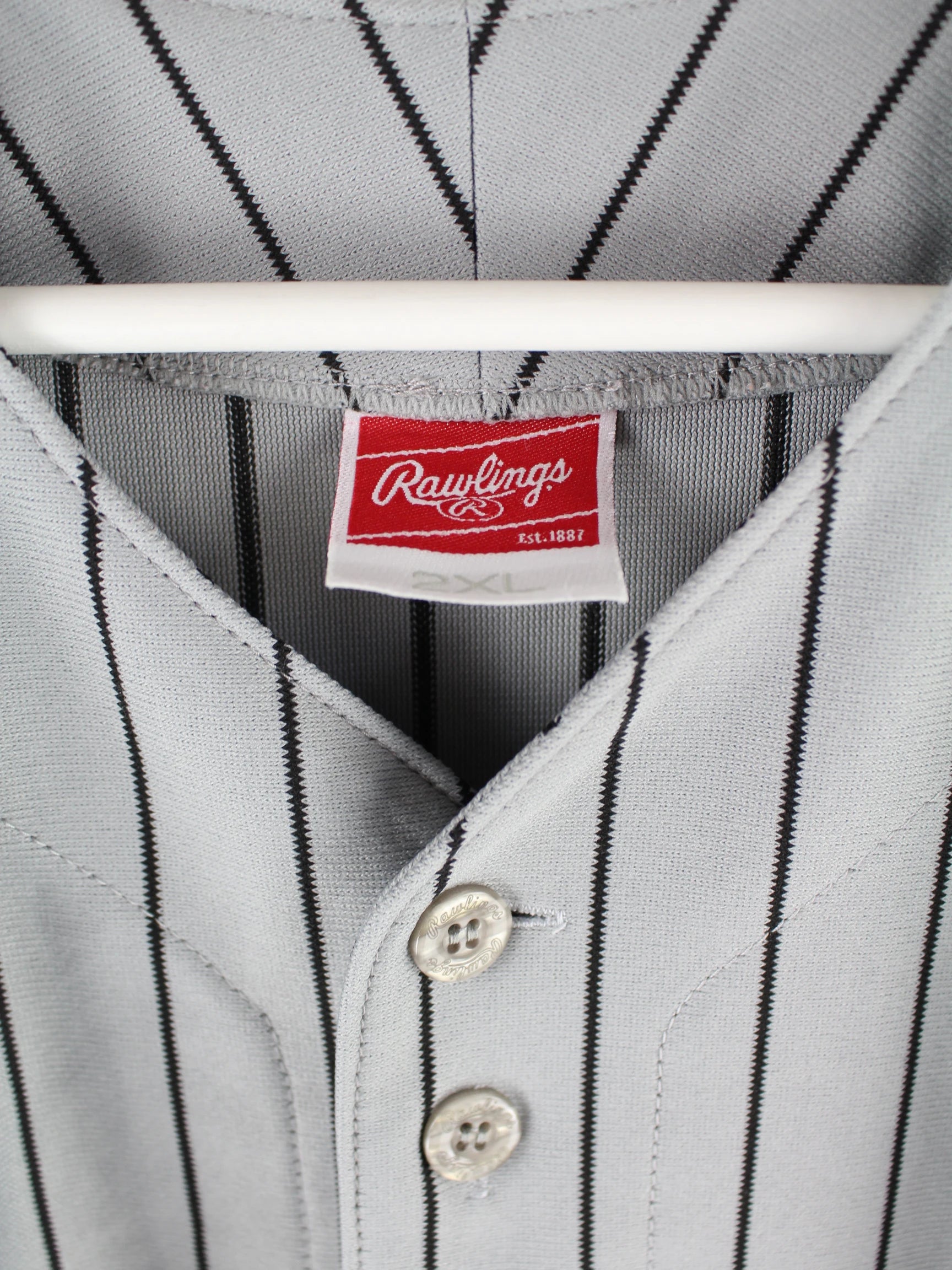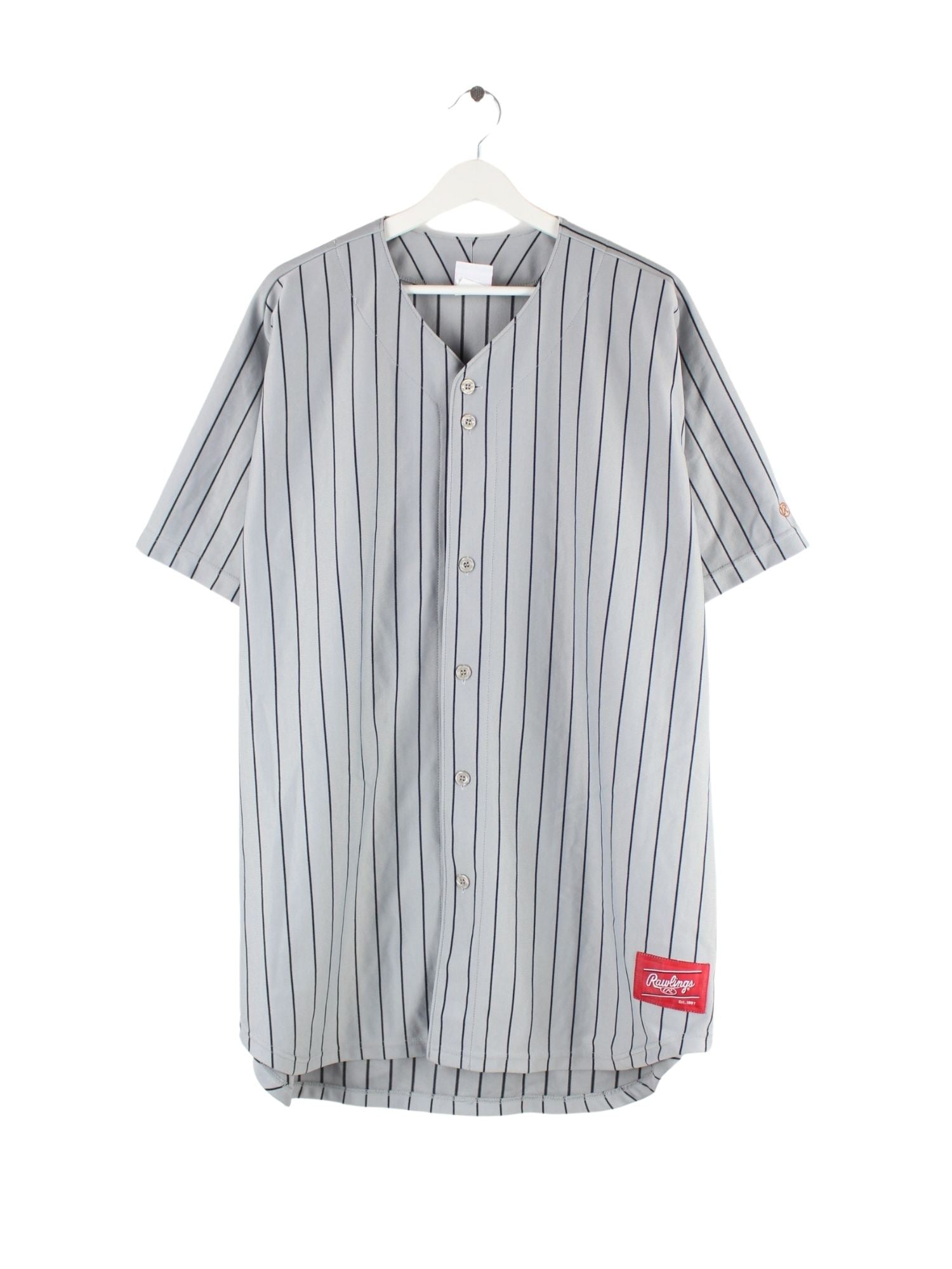 Grauer Vintage Jersey aus den 90'ern in Größe XXL. Es ist aus Synthetik angefertigt und in sehr gutem Zustand bei uns zu bekommen.