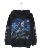 Vintage Damen Wolf Print Zip Hoodie Schwarz XL