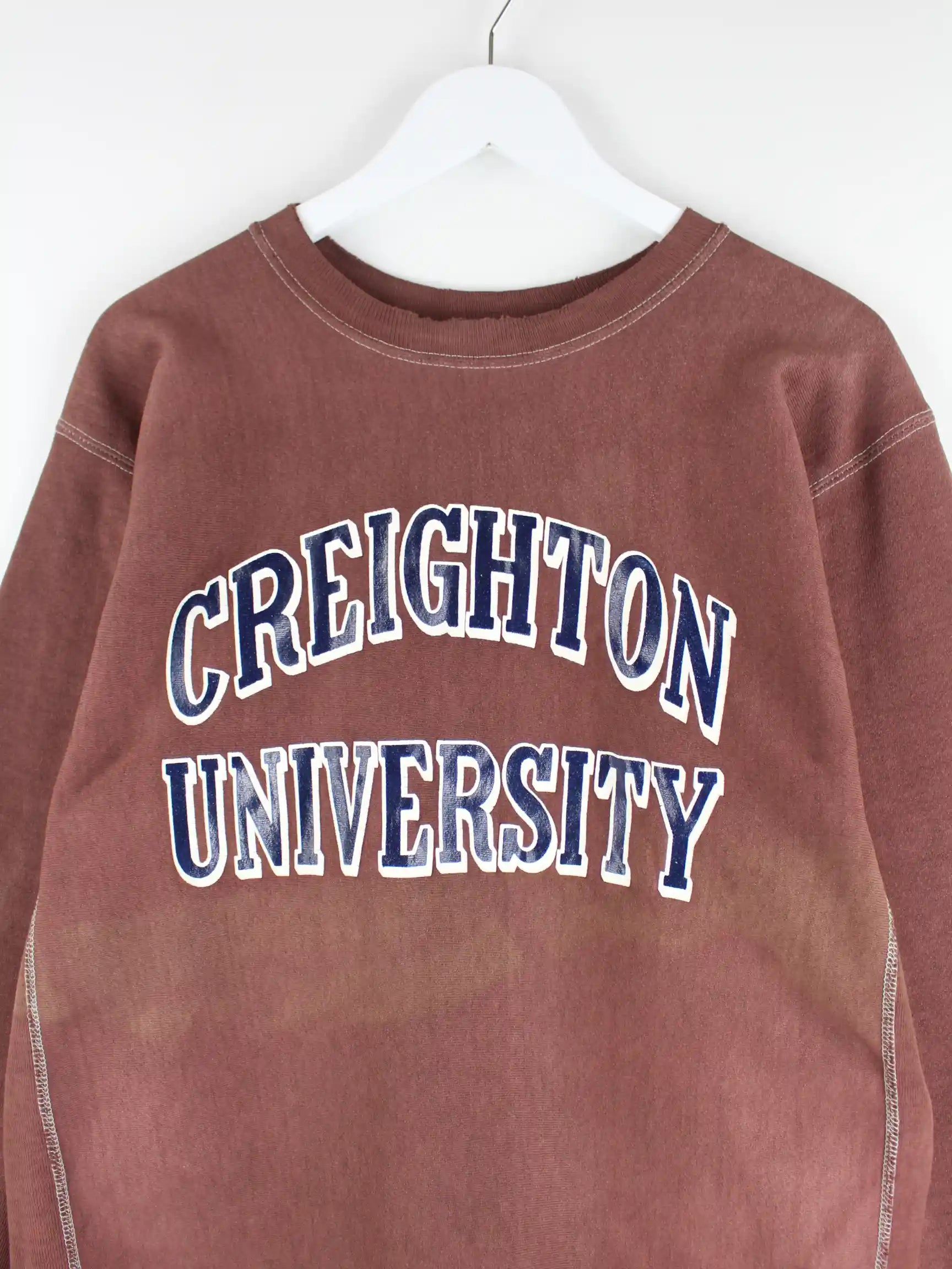Champion 90s Vintage Creighton University Print Reverse Weave Sweater Braun XL