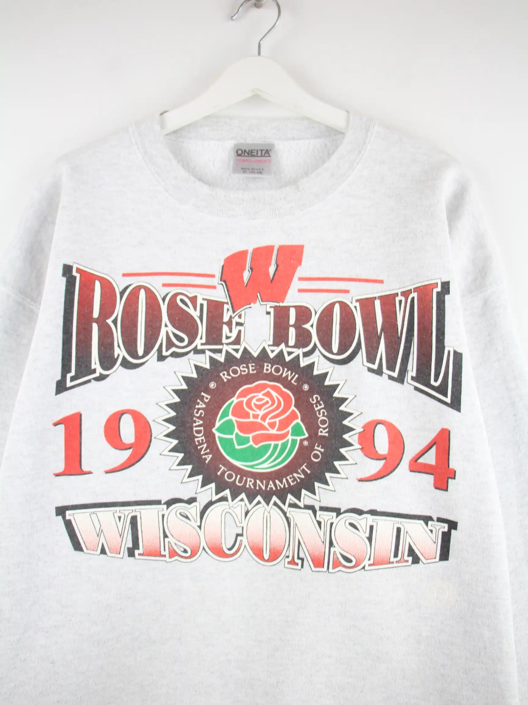 Oneita 1994 Vintage Rose Bowl Wisconsin Print Sweater Grau XL