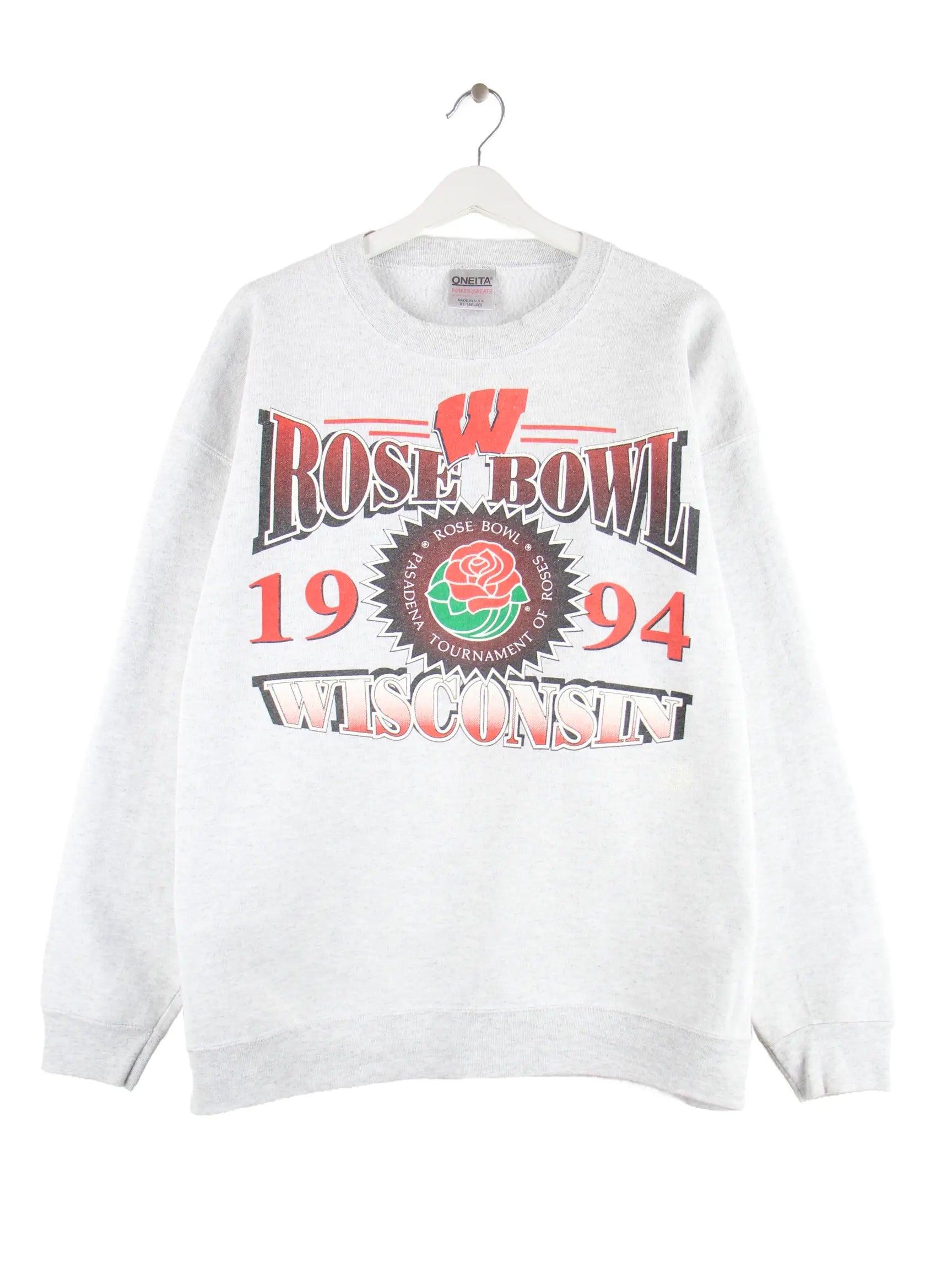 Oneita 1994 Vintage Rose Bowl Wisconsin Print Sweater Grau XL